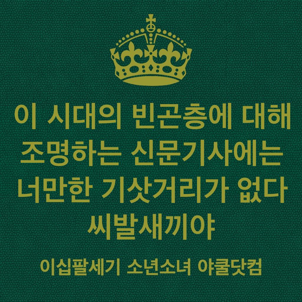 이 시대의 빈곤층에 대해 조명하는 신문기사에는 너만한 기삿거리가 없다 씨발새끼야