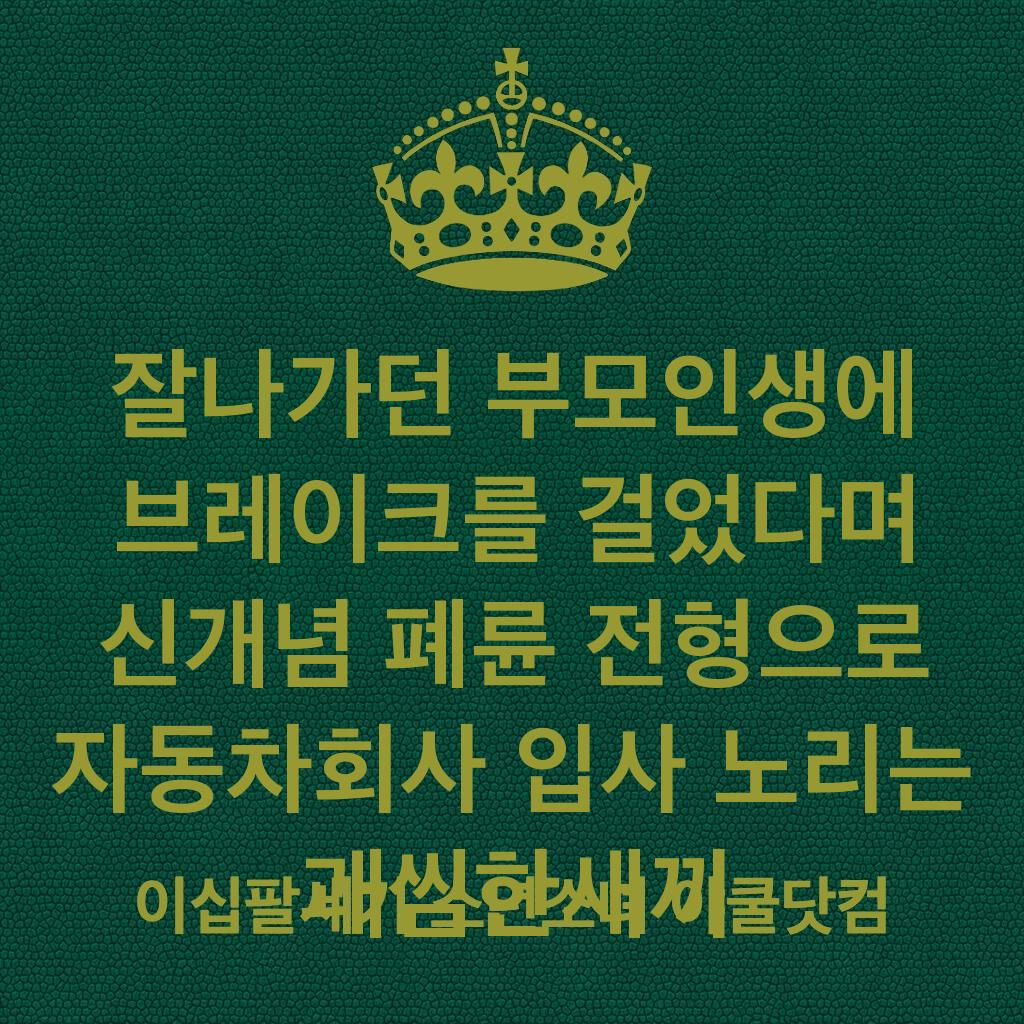 잘나가던 부모인생에 브레이크를 걸었다며 신개념 폐륜 전형으로 자동차회사 입사 노리는 괘씸한새끼