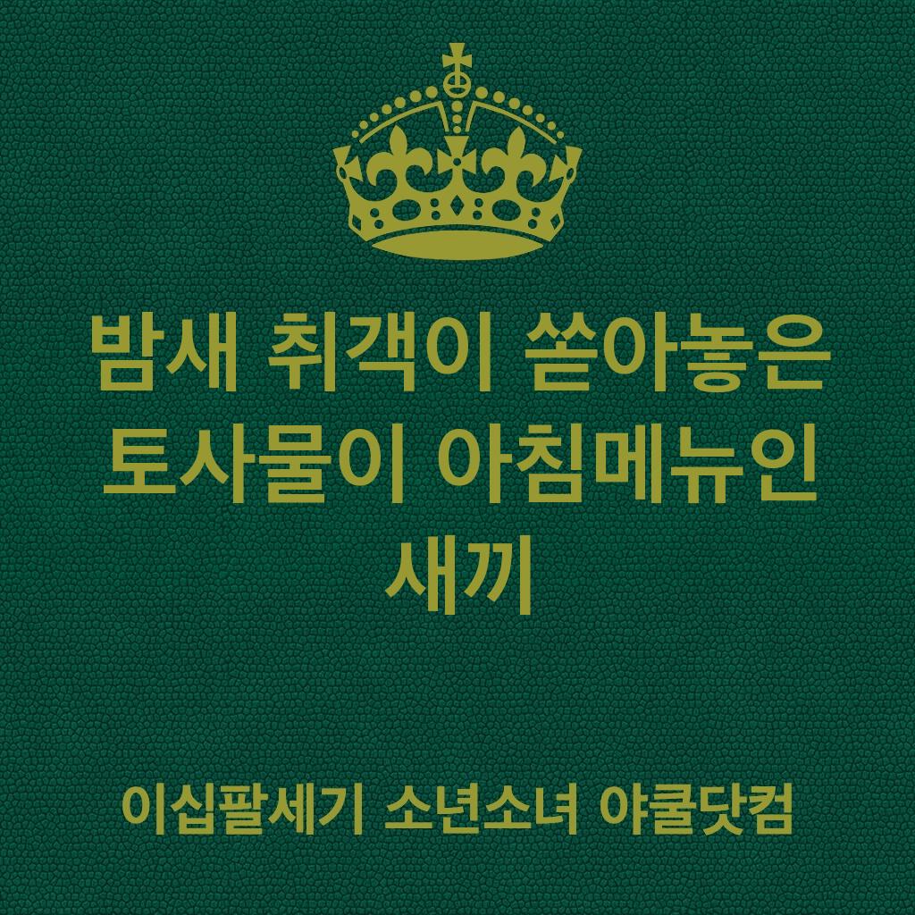 밤새 취객이 쏟아놓은 토사물이 아침메뉴인 새끼