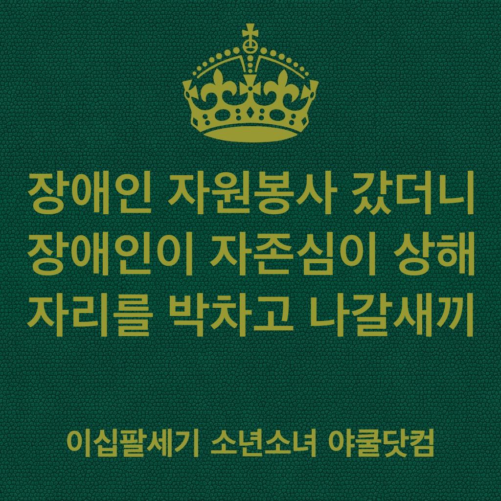 장애인 자원봉사 갔더니 장애인이 자존심이 상해 자리를 박차고 나갈새끼