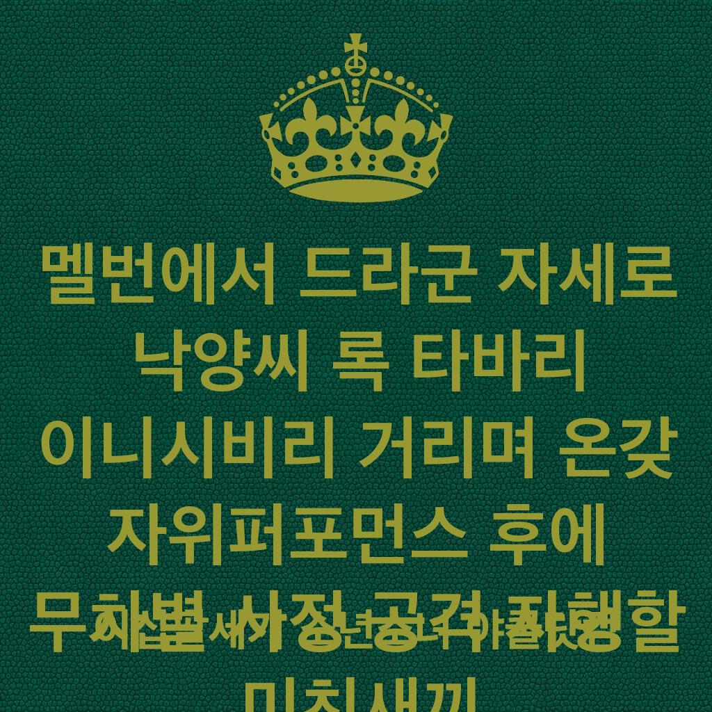 멜번에서 드라군 자세로 낙양씨 록 타바리 이니시비리 거리며 온갖 자위퍼포먼스 후에 무차별 사정 공격 자행할 미친새끼