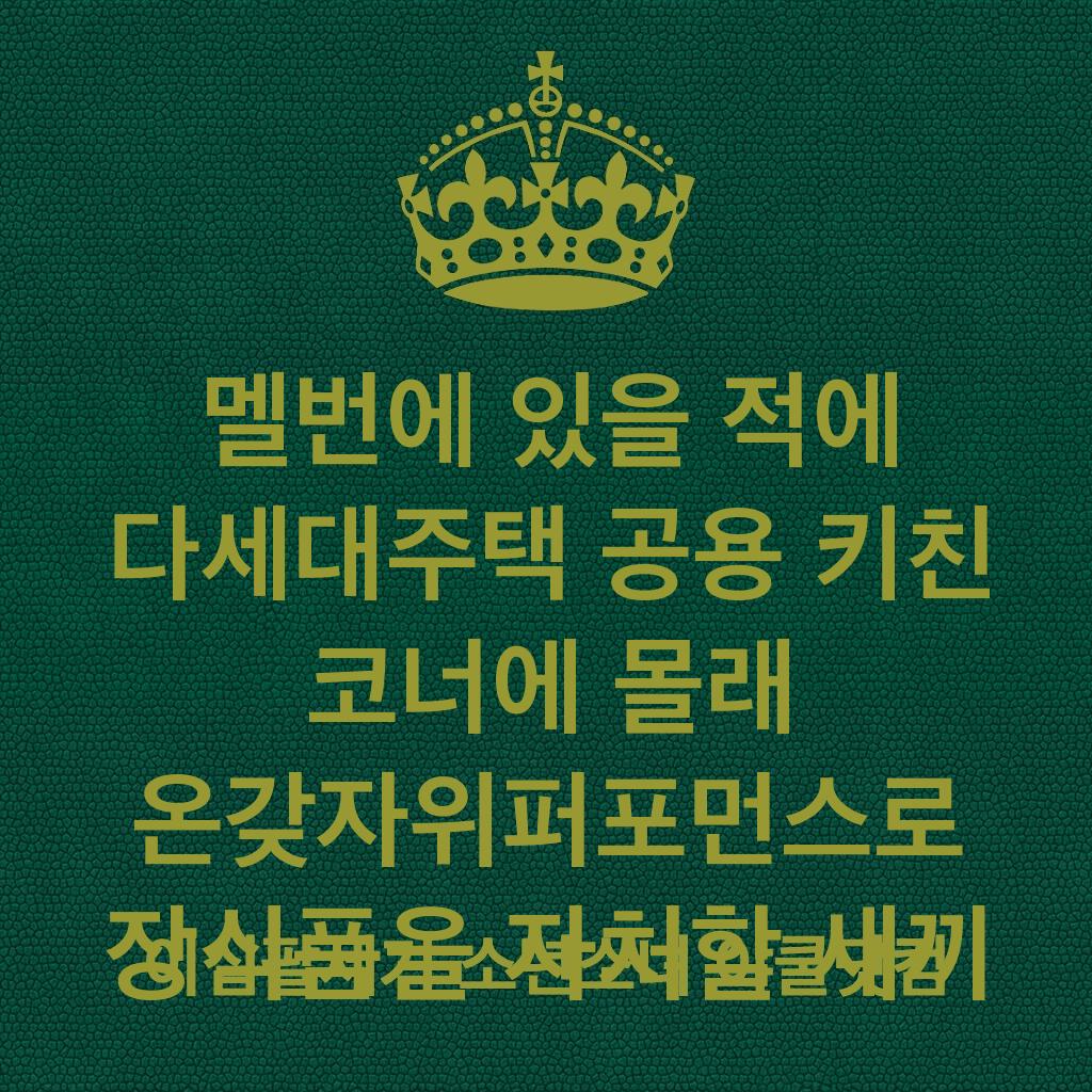 멜번에 있을 적에 다세대주택 공용 키친 코너에 몰래 온갖자위퍼포먼스로 장식품을 자처할 새끼