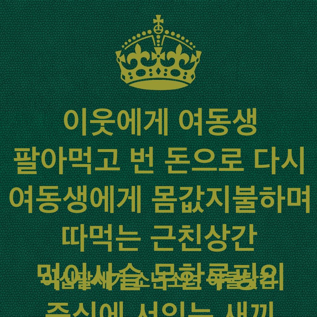 이웃에게 여동생 팔아먹고 번 돈으로 다시 여동생에게 몸값지불하며 따먹는 근친상간 먹이사슬 무한루핑의 중심에 서있는 새끼