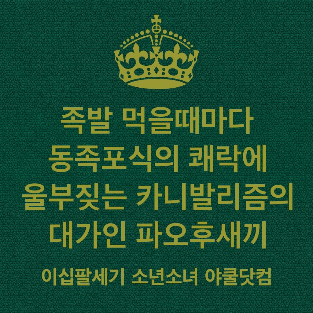 족발 먹을때마다 동족포식의 쾌락에 울부짖는 카니발리즘의 대가인 파오후새끼
