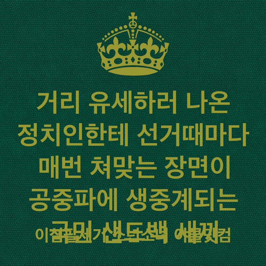 거리 유세하러 나온 정치인한테 선거때마다 매번 쳐맞는 장면이 공중파에 생중계되는 국민 샌드백 새끼