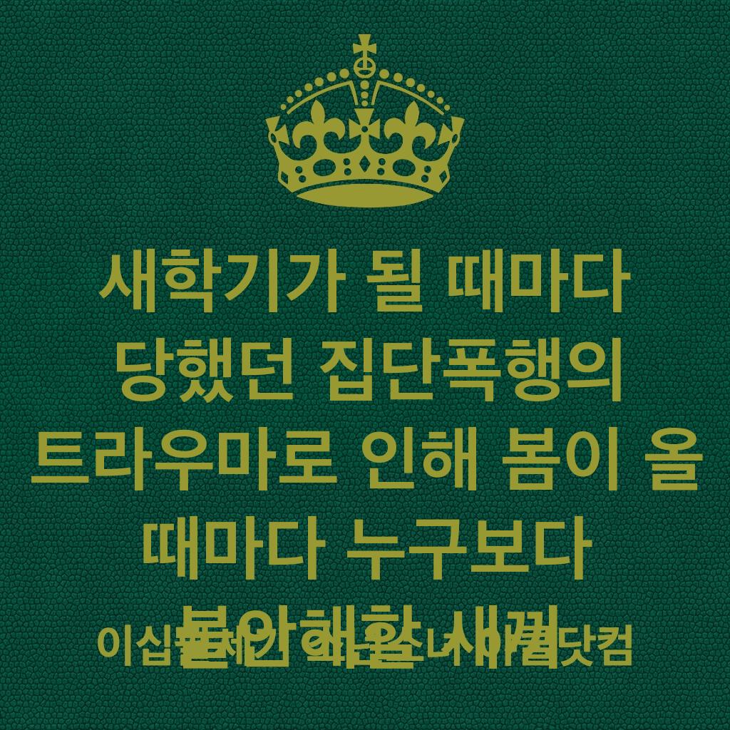 새학기가 될 때마다 당했던 집단폭행의 트라우마로 인해 봄이 올 때마다 누구보다 불안해할 새끼