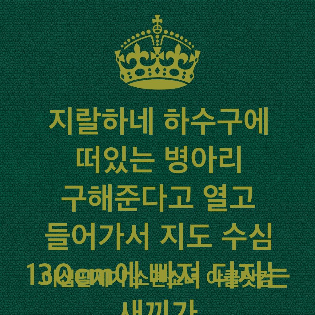 지랄하네 하수구에 떠있는 병아리 구해준다고 열고 들어가서 지도 수심 130cm에 빠져 디지는 새끼가