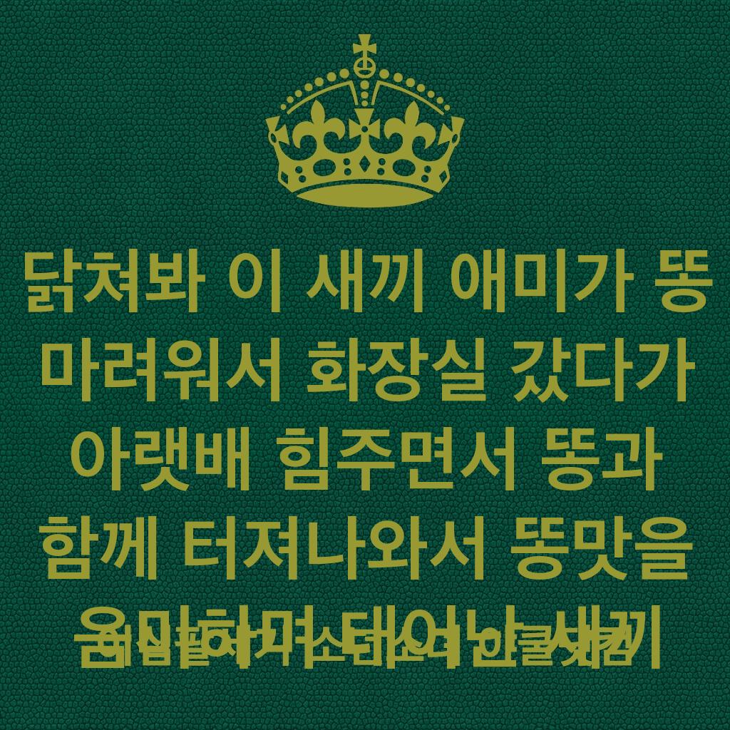 닭쳐봐 이 새끼 애미가 똥 마려워서 화장실 갔다가 아랫배 힘주면서 똥과 함께 터져나와서 똥맛을 음미하며 태어난 새끼