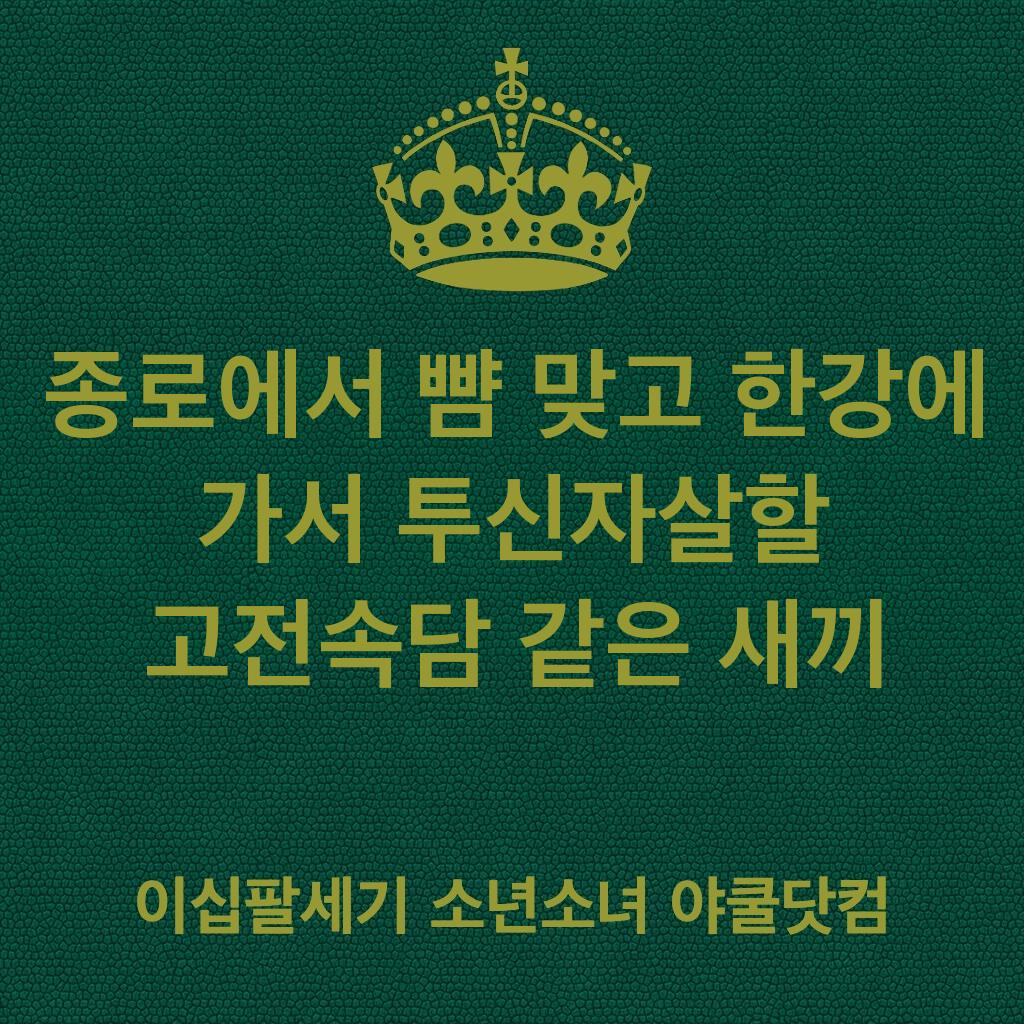 종로에서 뺨 맞고 한강에 가서 투신자살할 고전속담 같은 새끼