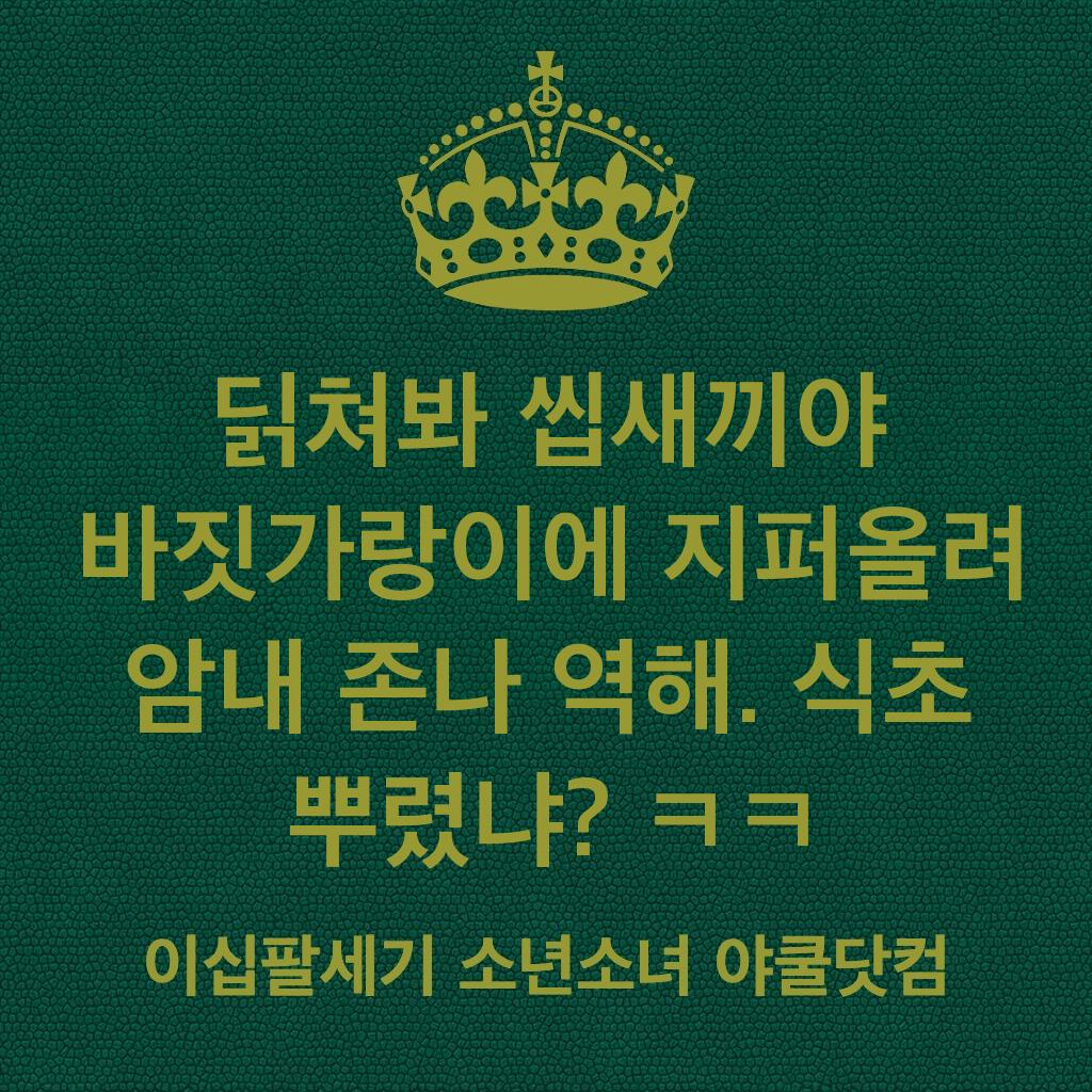 딝쳐봐 씹새끼야 바짓가랑이에 지퍼올려 암내 존나 역해. 식초 뿌렸냐? ㅋㅋ