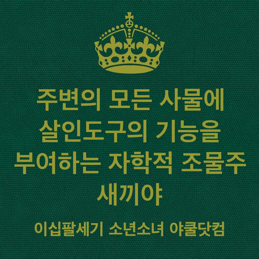 주변의 모든 사물에 살인도구의 기능을 부여하는 자학적 조물주 새끼야