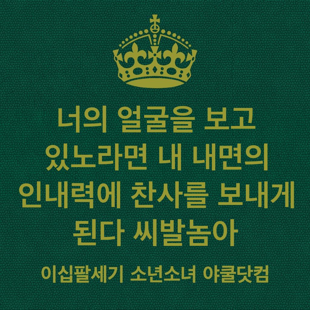 너의 얼굴을 보고 있노라면 내 내면의 인내력에 찬사를 보내게 된다 씨발놈아