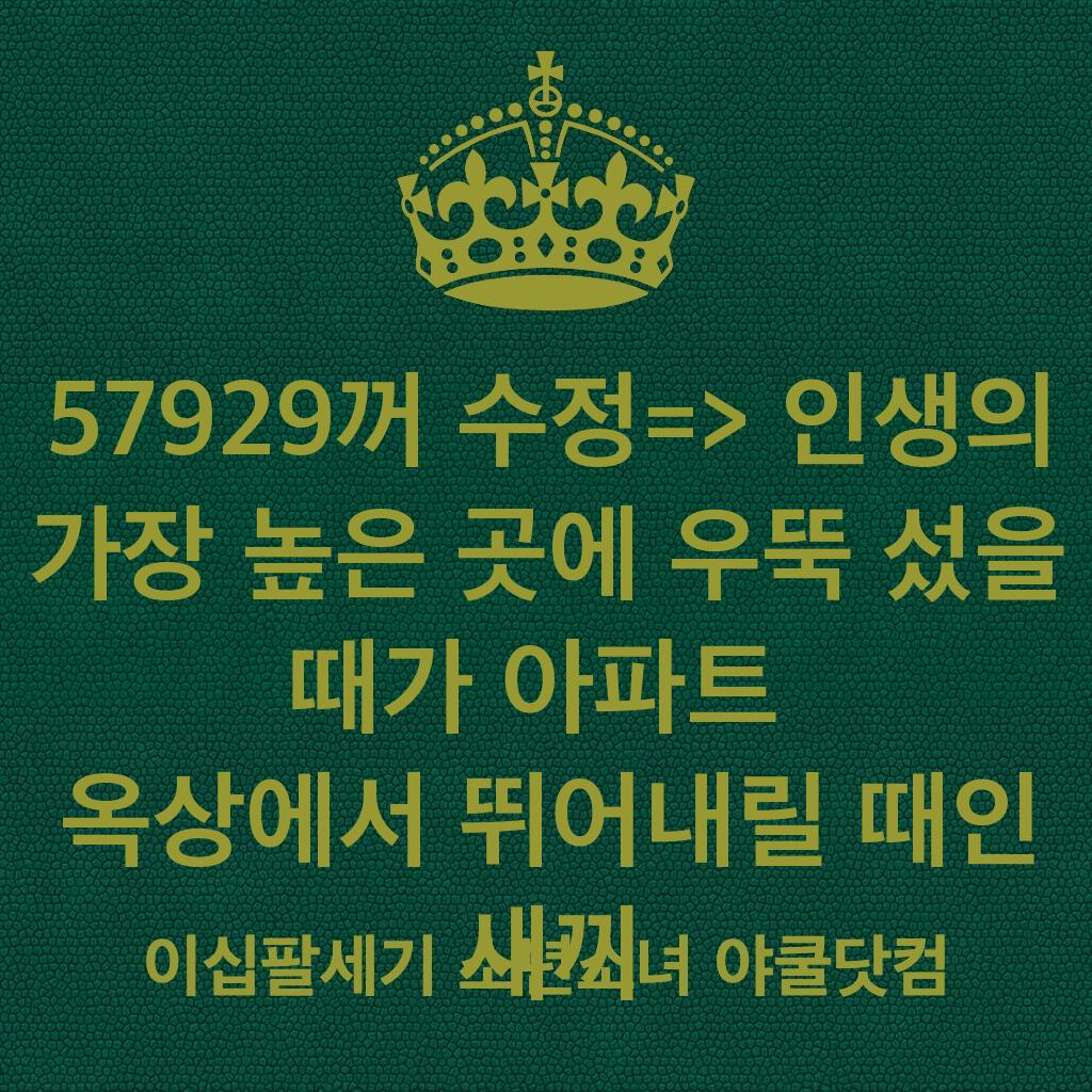 57929꺼 수정=> 인생의 가장 높은 곳에 우뚝 섰을 때가 아파트 옥상에서 뛰어내릴 때인 새끼