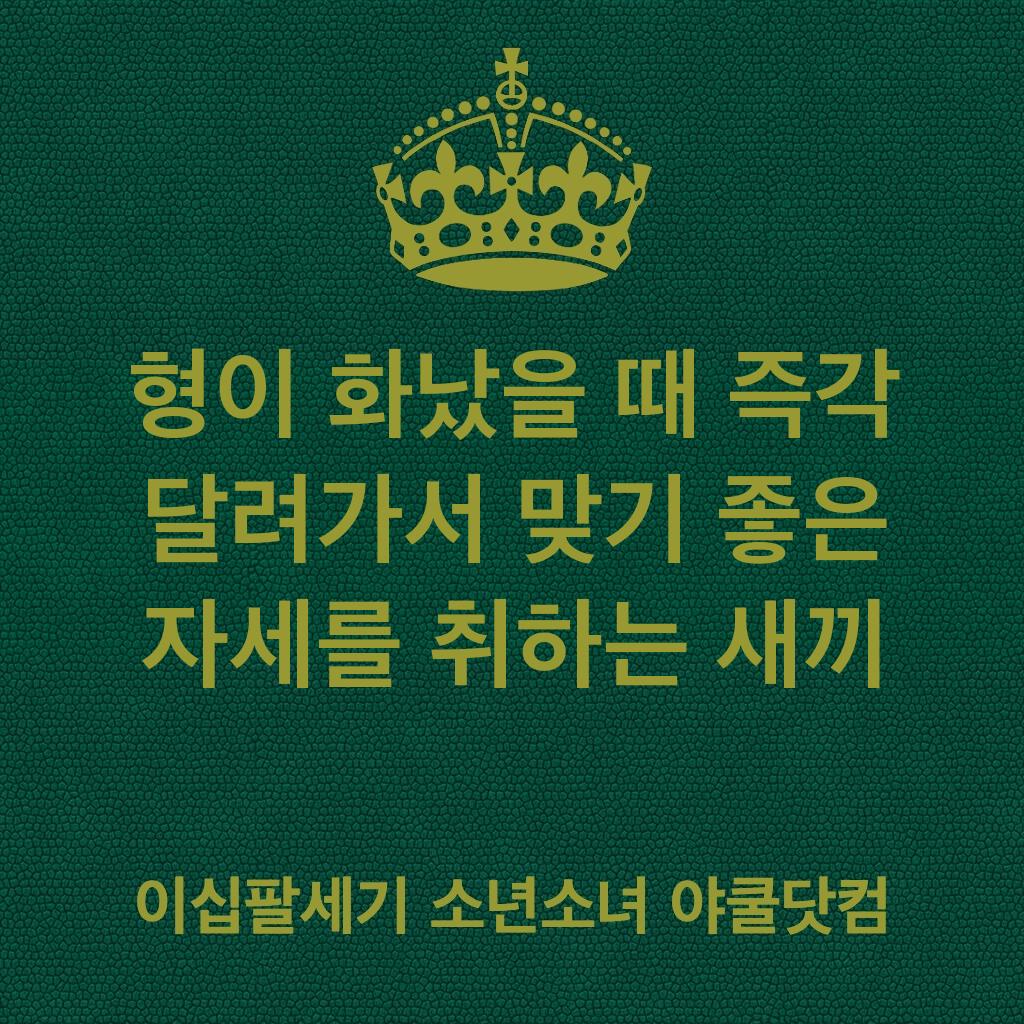 형이 화났을 때 즉각 달려가서 맞기 좋은 자세를 취하는 새끼