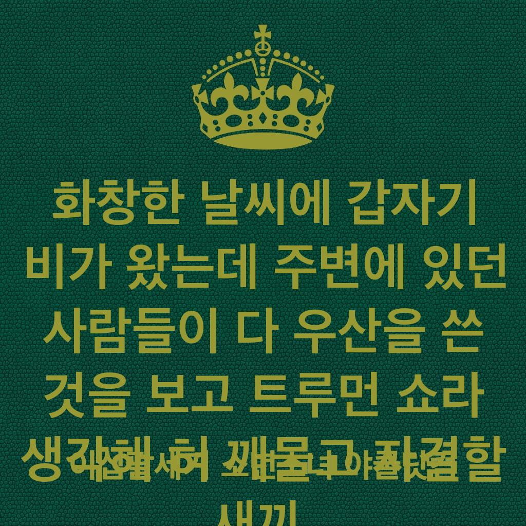 화창한 날씨에 갑자기 비가 왔는데 주변에 있던 사람들이 다 우산을 쓴 것을 보고 트루먼 쇼라 생각해 혀 깨물고 자결할 새끼