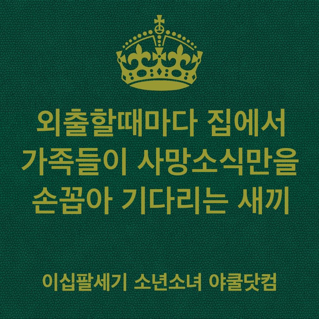 외출할때마다 집에서 가족들이 사망소식만을 손꼽아 기다리는 새끼