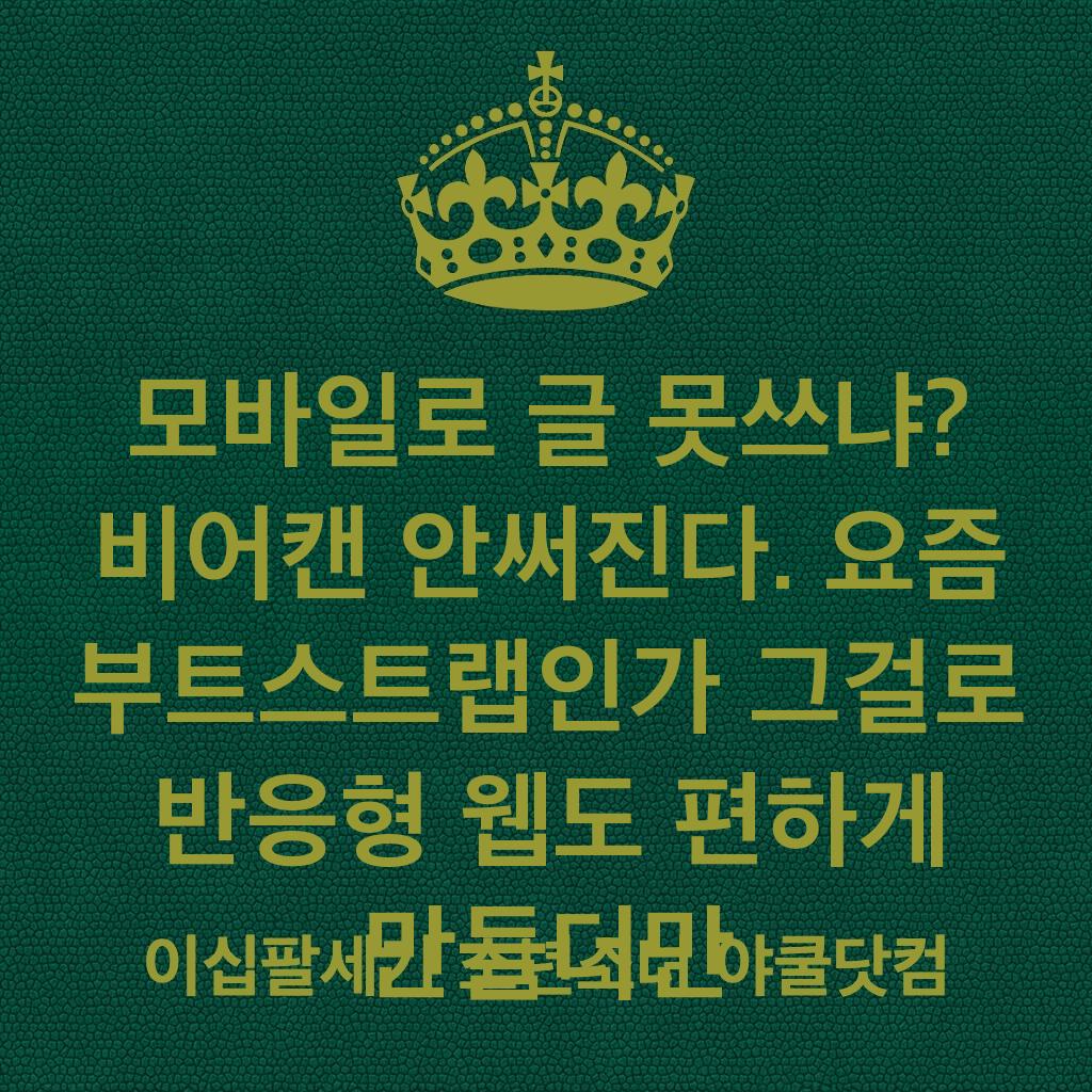 모바일로 글 못쓰냐? 비어캔 안써진다. 요즘 부트스트랩인가 그걸로 반응형 웹도 편하게 만들더만