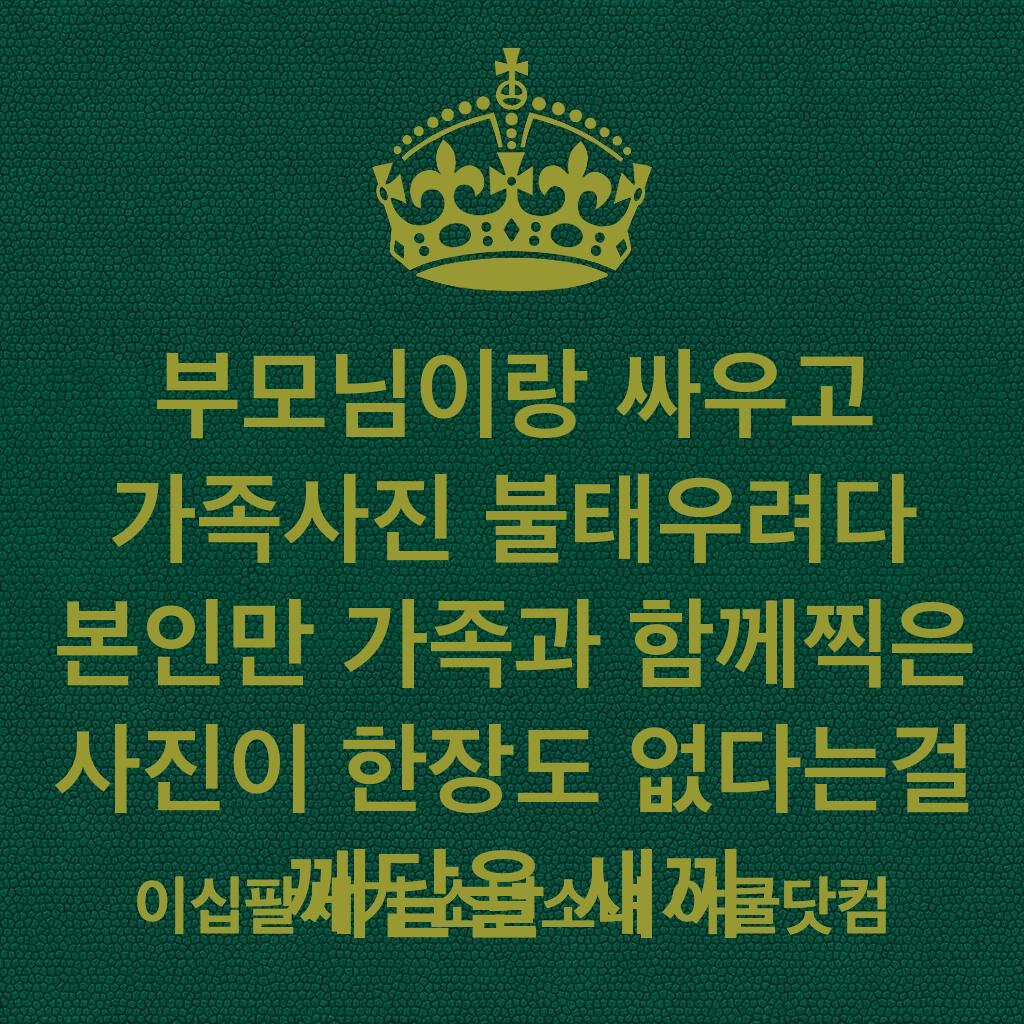 부모님이랑 싸우고 가족사진 불태우려다 본인만 가족과 함께찍은 사진이 한장도 없다는걸 깨달을 새끼