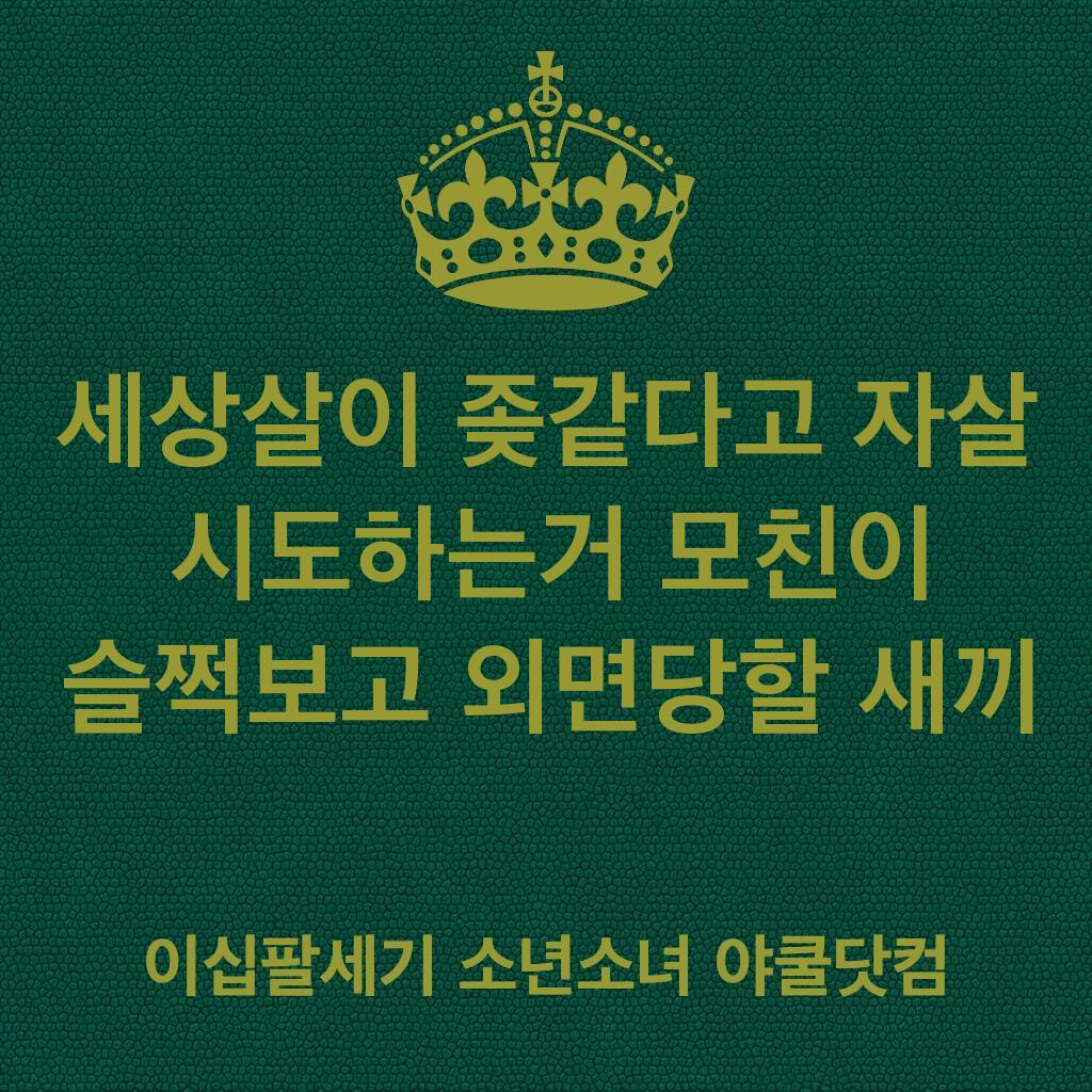세상살이 좆같다고 자살 시도하는거 모친이 슬쩍보고 외면당할 새끼