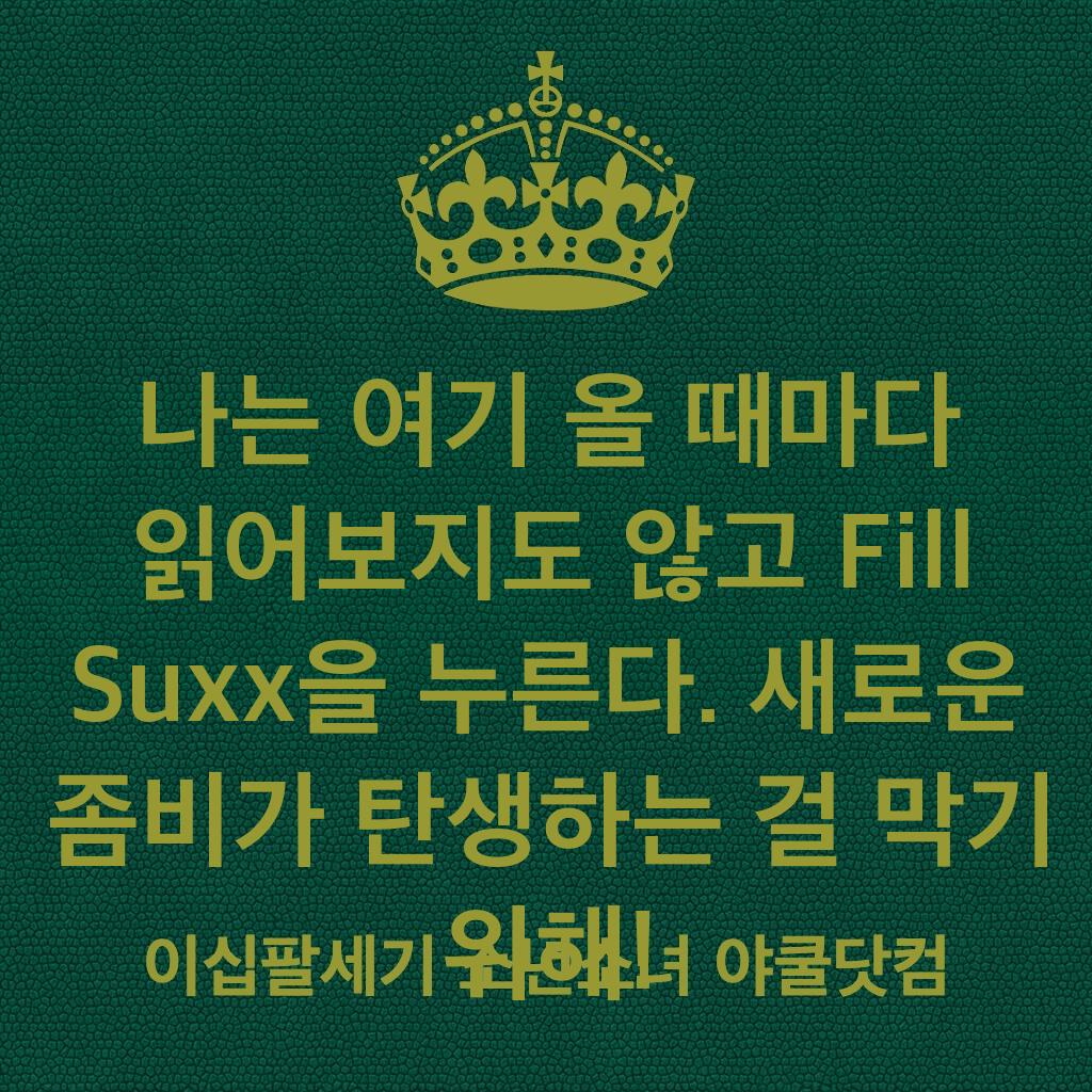 나는 여기 올 때마다 읽어보지도 않고 Fill Suxx을 누른다. 새로운 좀비가 탄생하는 걸 막기 위해!