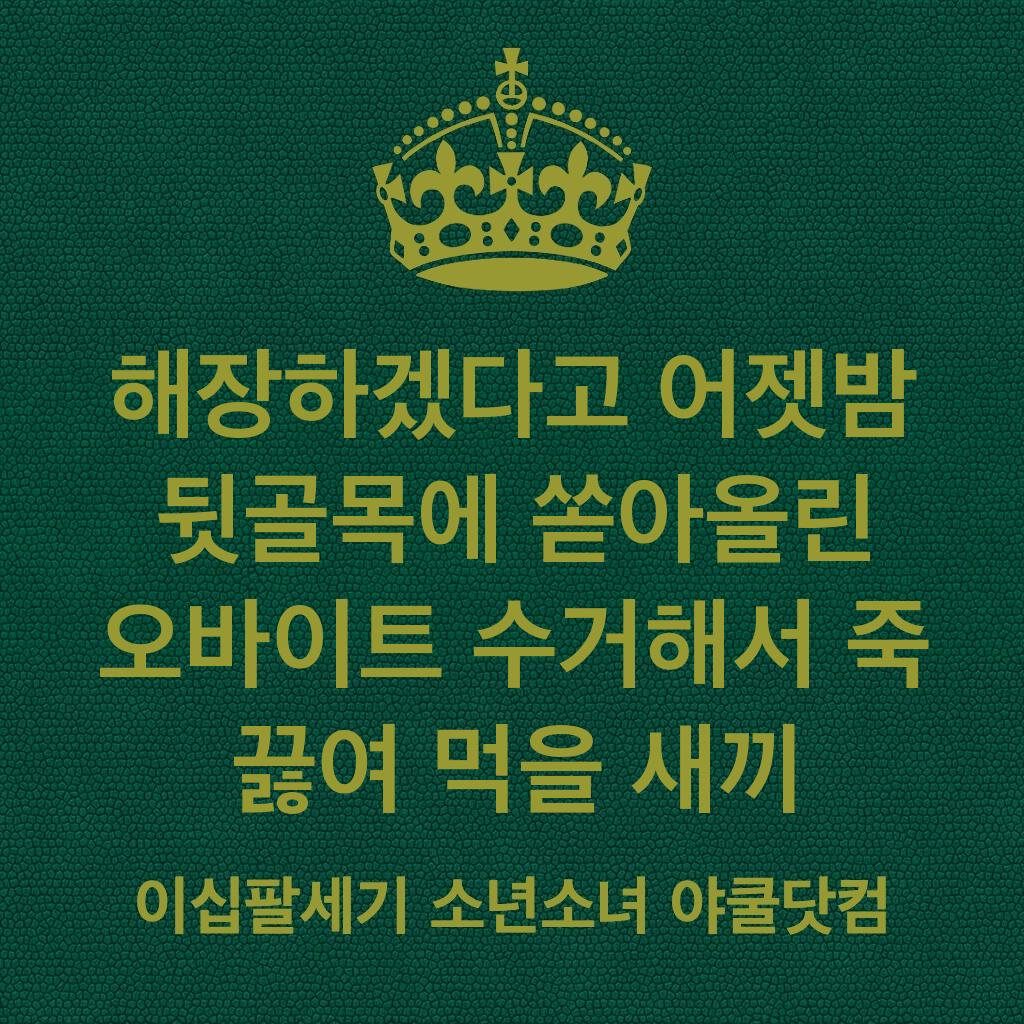 해장하겠다고 어젯밤 뒷골목에 쏟아올린 오바이트 수거해서 죽 끓여 먹을 새끼