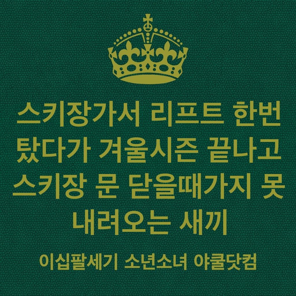 스키장가서 리프트 한번 탔다가 겨울시즌 끝나고 스키장 문 닫을때가지 못 내려오는 새끼