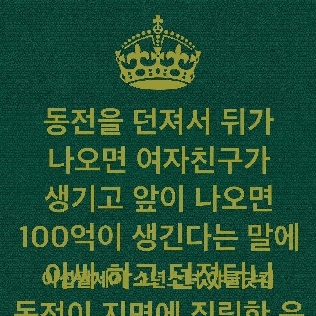 동전을 던져서 뒤가 나오면 여자친구가 생기고 앞이 나오면 100억이 생긴다는 말에 아싸 하고 던졌더니 동전이 지면에 직립한 운 더럽게 없는 새끼