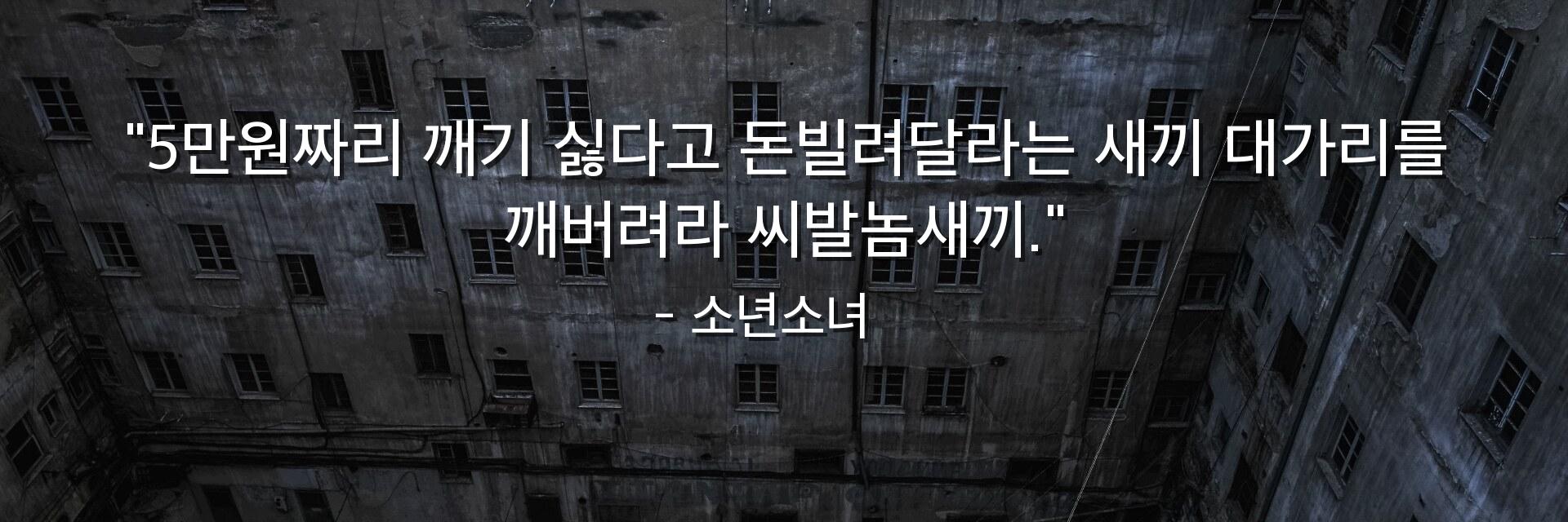 "5만원짜리 깨기 싫다고 돈빌려달라는 새끼 대가리를 깨버려라 씨발놈새끼."