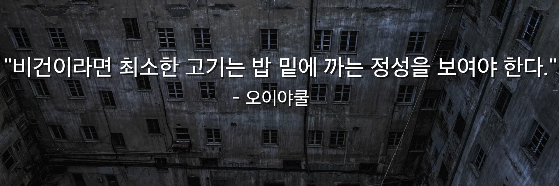 "비건이라면 최소한 고기는 밥 밑에 까는 정성을 보여야 한다."