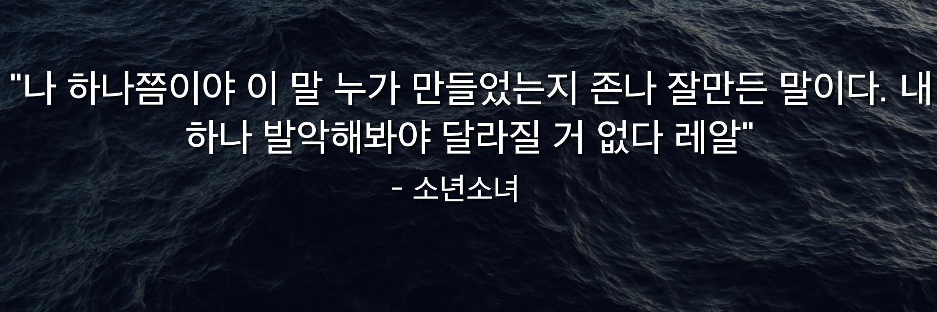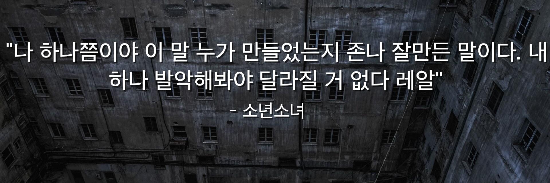 "나 하나쯤이야 이 말 누가 만들었는지 존나 잘만든 말이다. 내 하나 발악해봐야 달라질 거 없다 레알"
