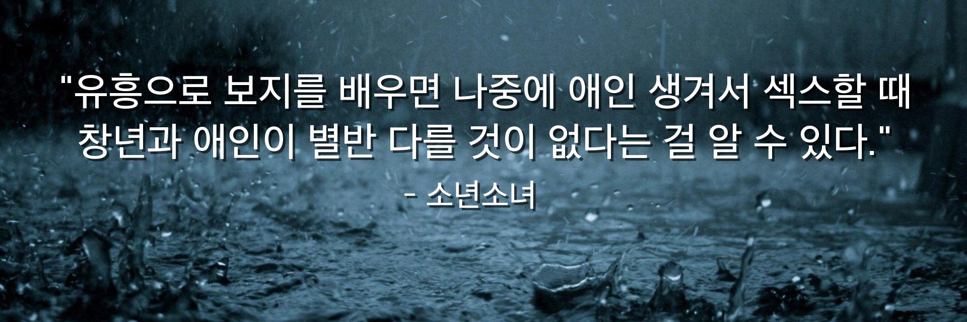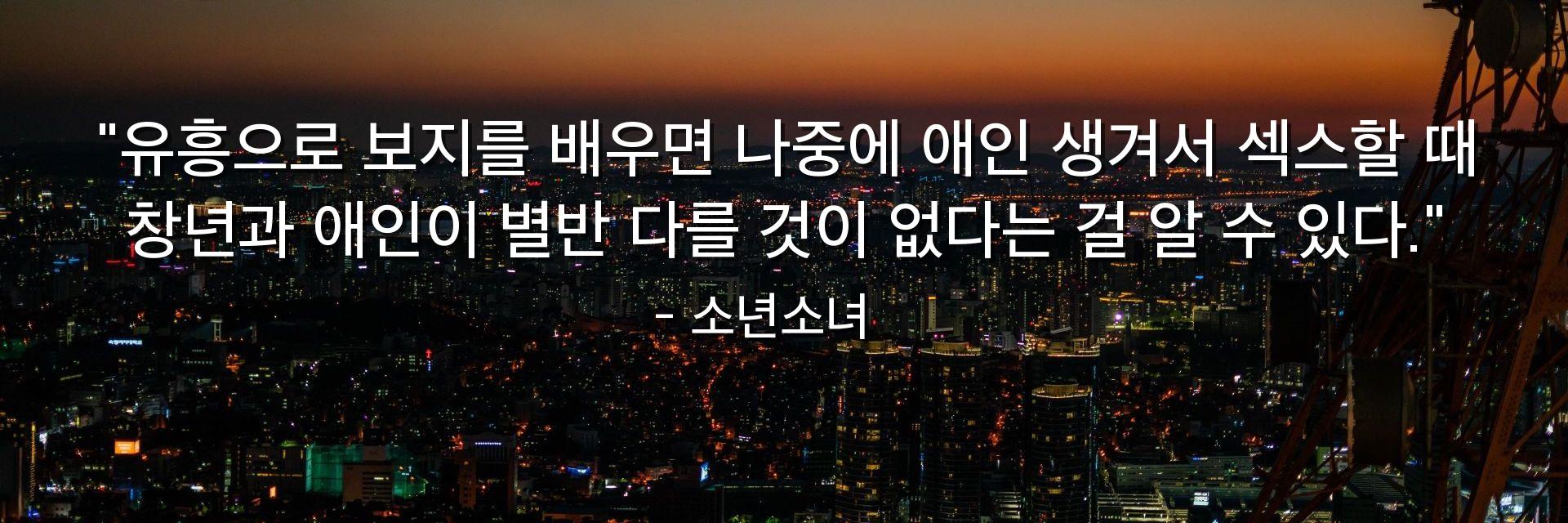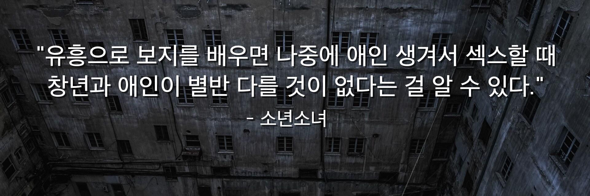 "유흥으로 보지를 배우면 나중에 애인 생겨서 섹스할 때 창년과 애인이 별반 다를 것이 없다는 걸 알 수 있다."
