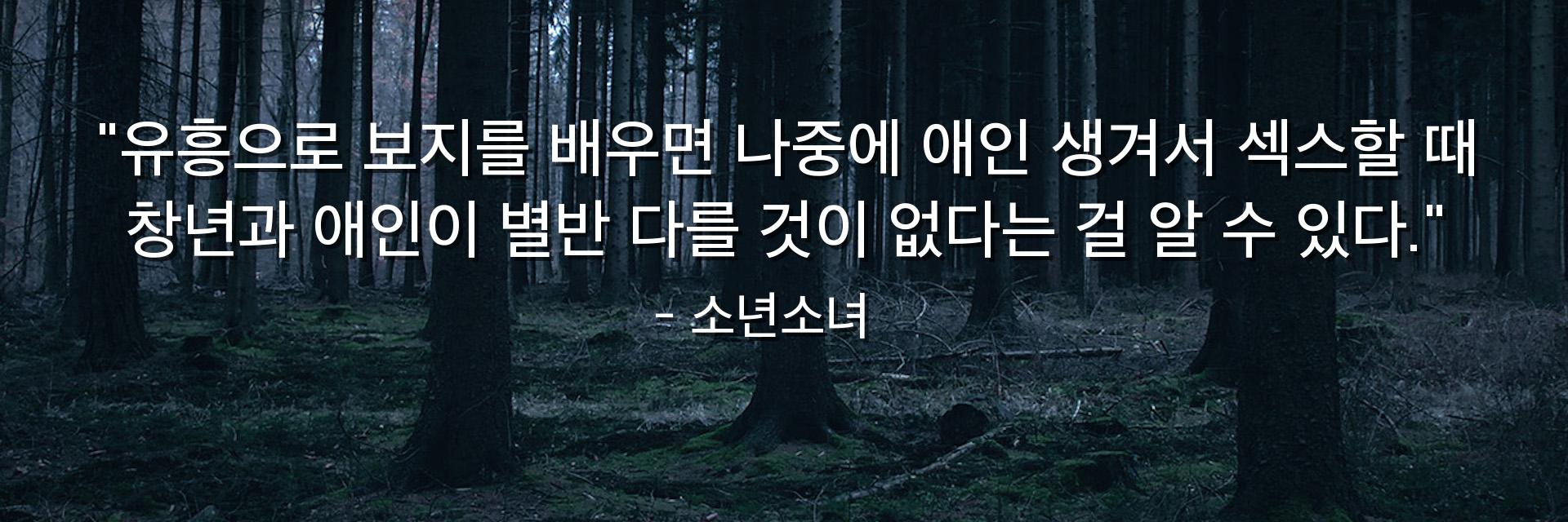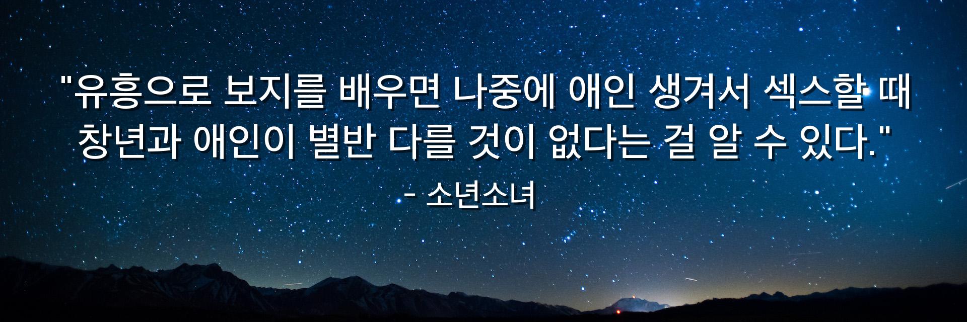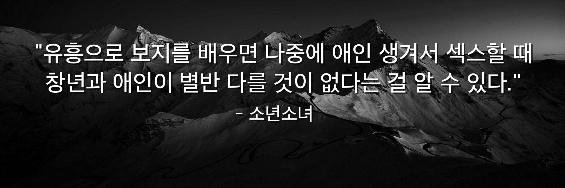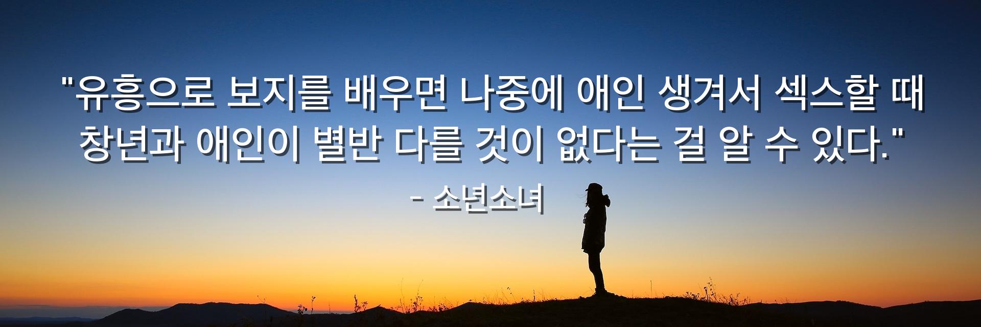 "유흥으로 보지를 배우면 나중에 애인 생겨서 섹스할 때 창년과 애인이 별반 다를 것이 없다는 걸 알 수 있다."