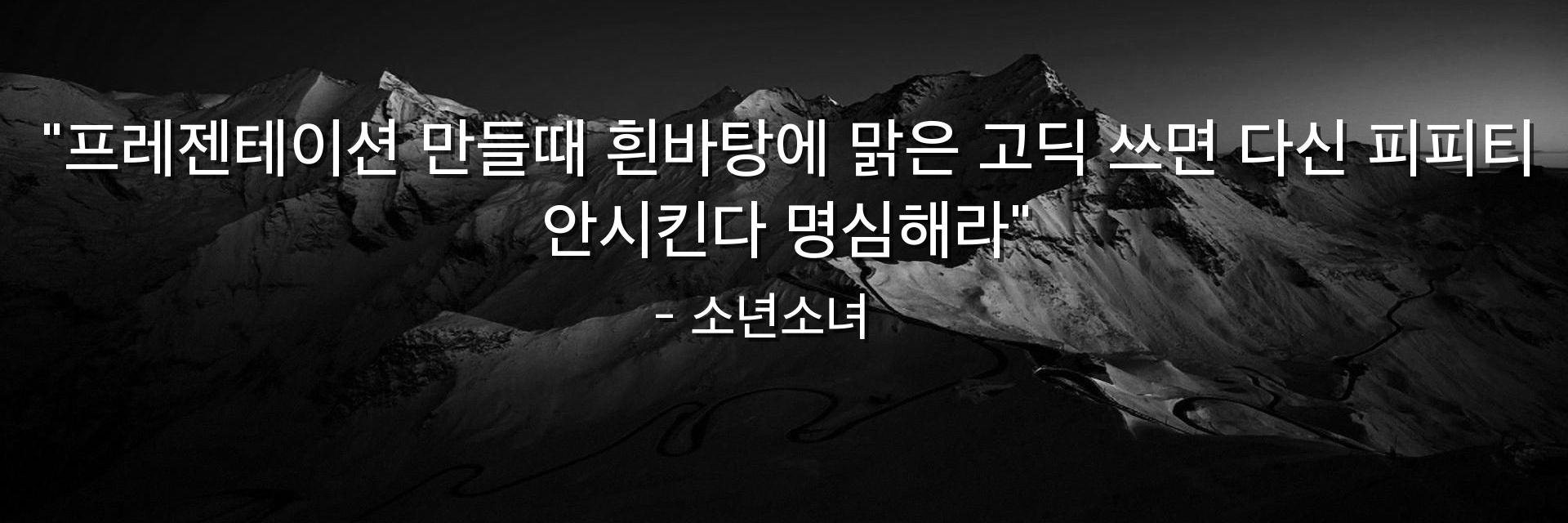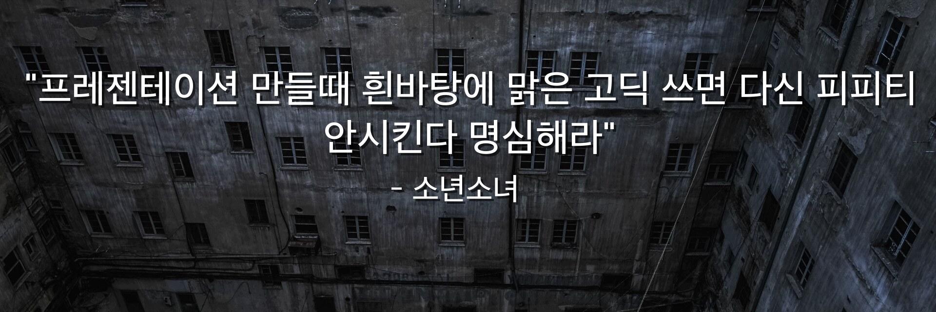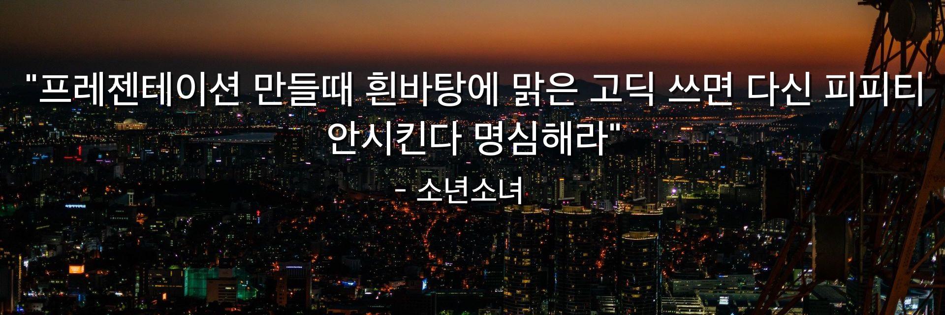 "프레젠테이션 만들때 흰바탕에 맑은 고딕 쓰면 다신 피피티 안시킨다 명심해라"