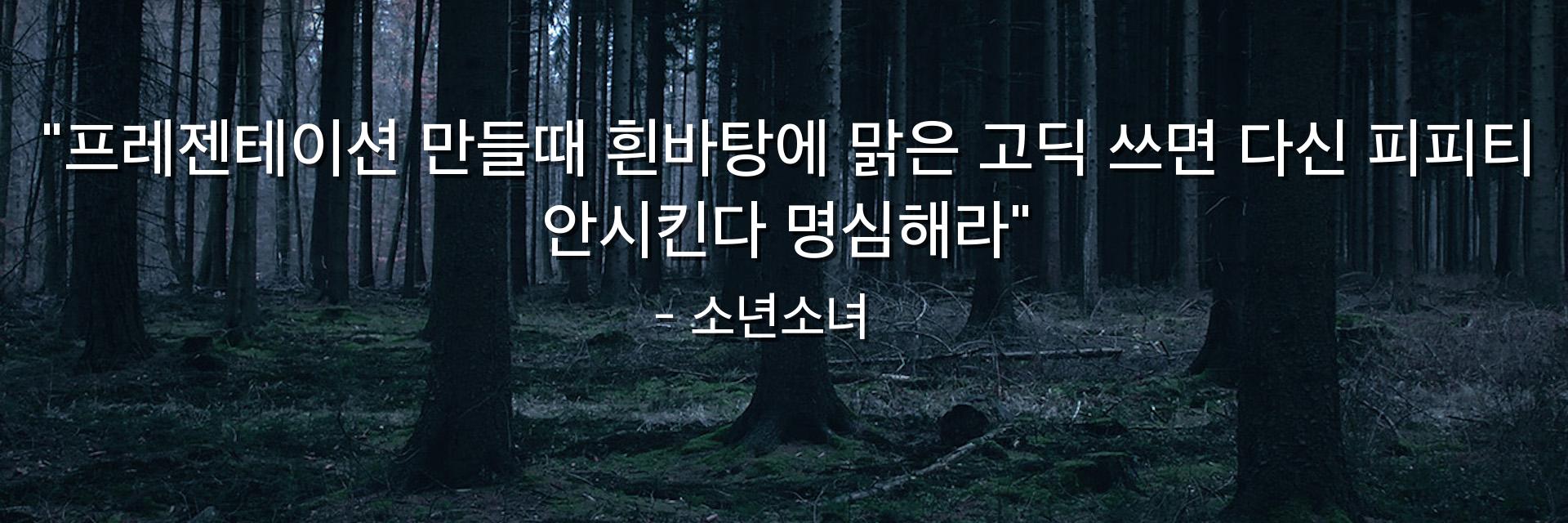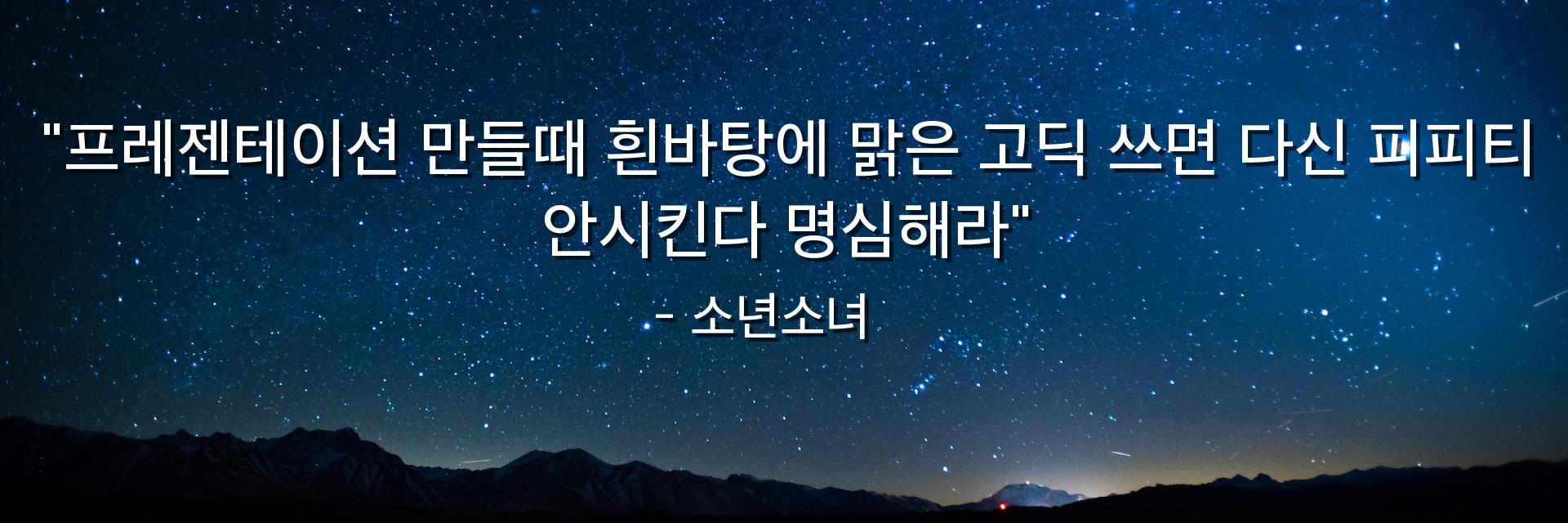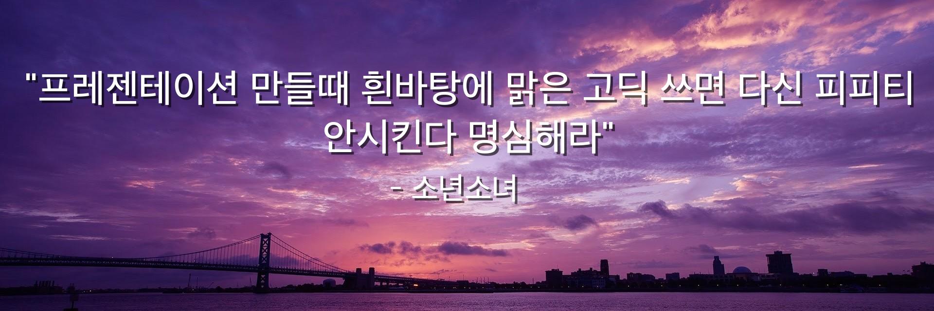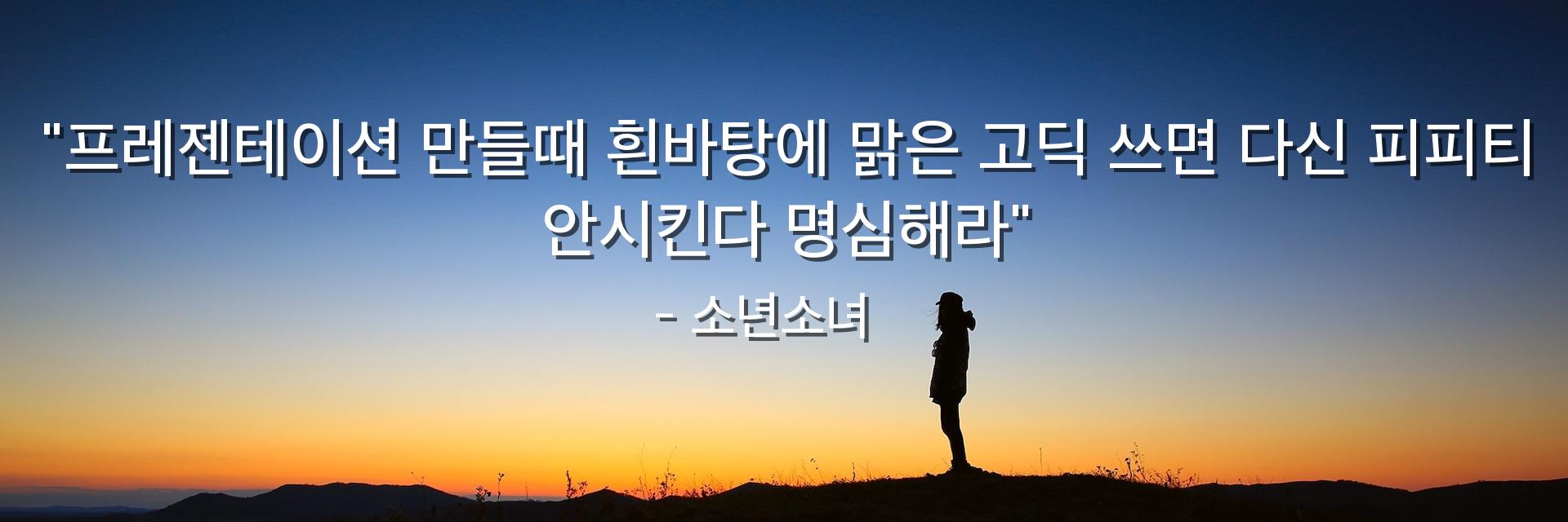 "프레젠테이션 만들때 흰바탕에 맑은 고딕 쓰면 다신 피피티 안시킨다 명심해라"