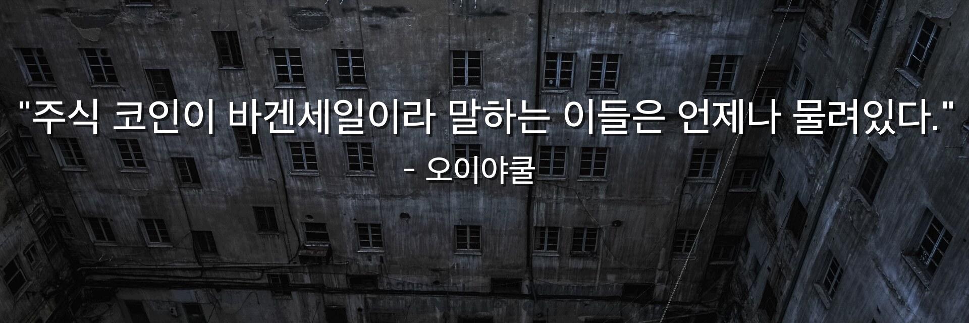 "주식 코인이 바겐세일이라 말하는 이들은 언제나 물려있다."