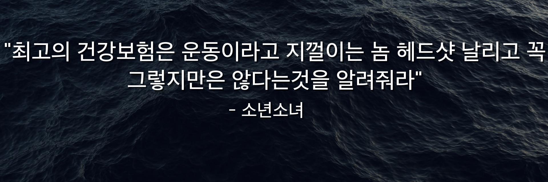 "최고의 건강보험은 운동이라고 지껄이는 놈 헤드샷 날리고 꼭 그렇지만은 않다는것을 알려줘라"