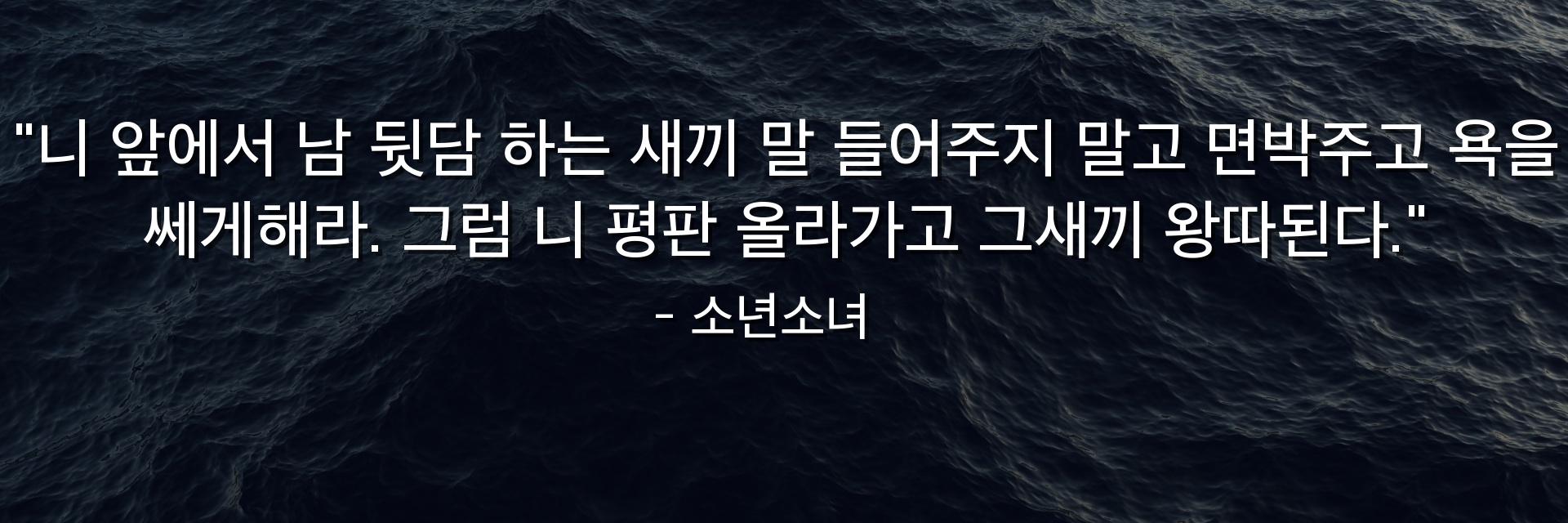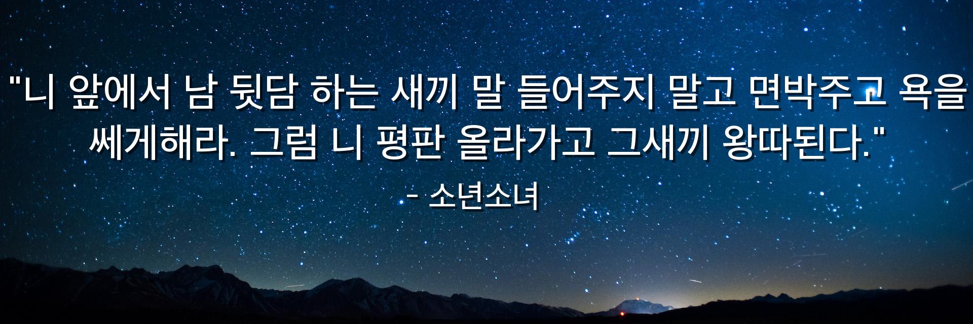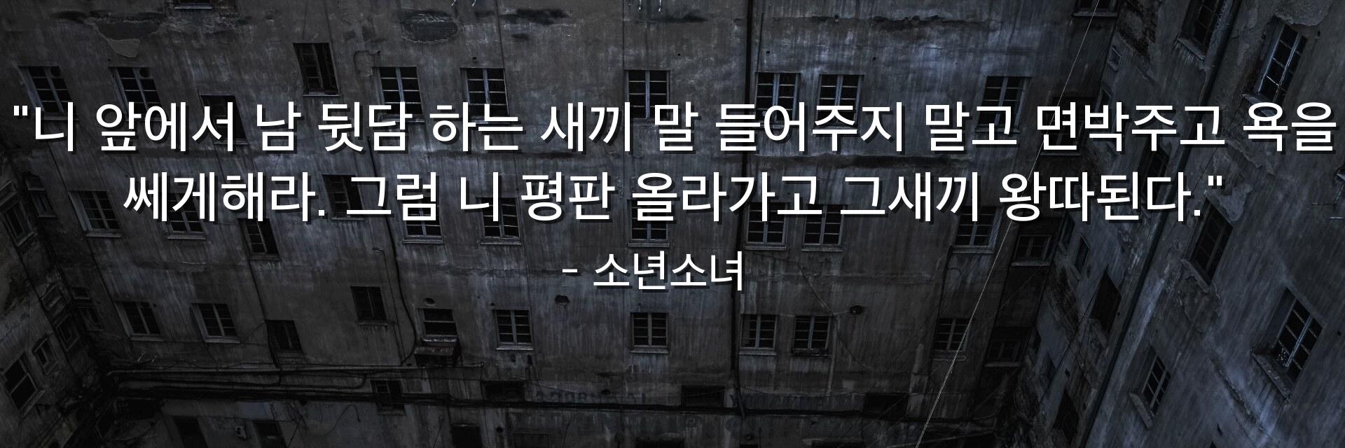"니 앞에서 남 뒷담 하는 새끼 말 들어주지 말고 면박주고 욕을 쎄게해라. 그럼 니 평판 올라가고 그새끼 왕따된다."