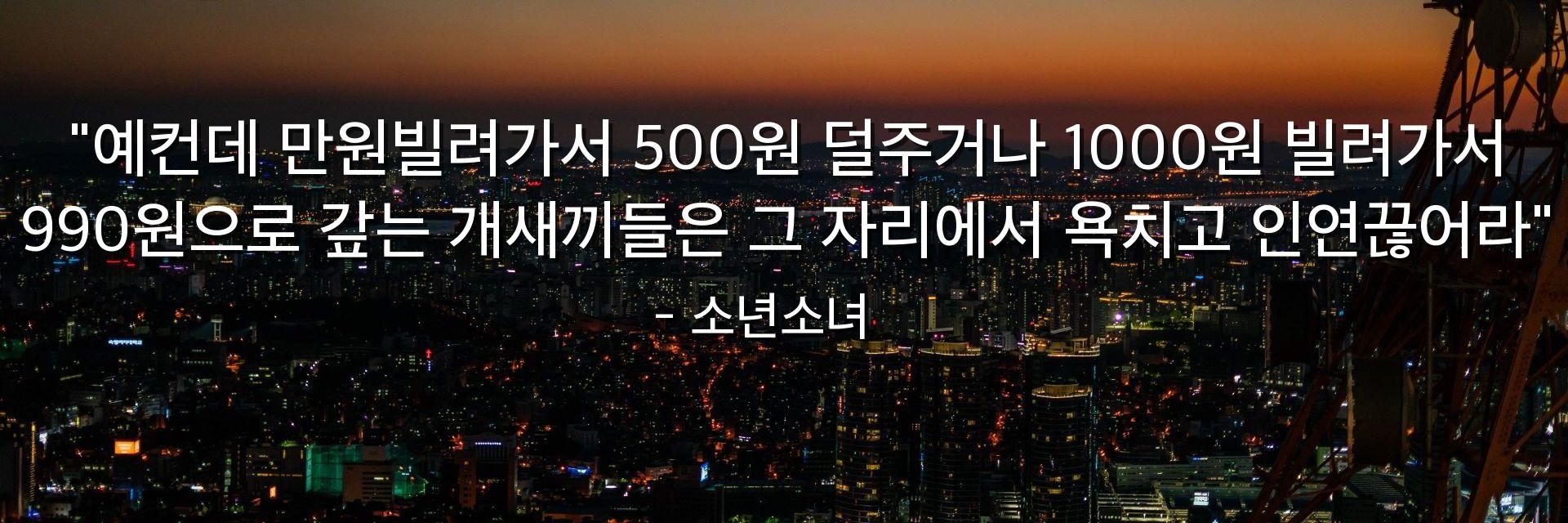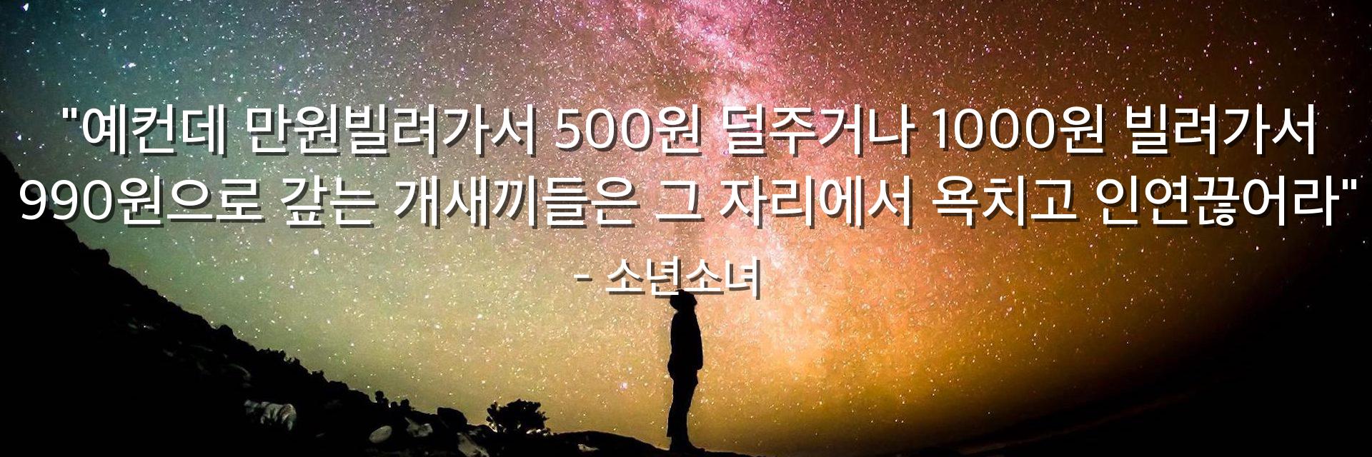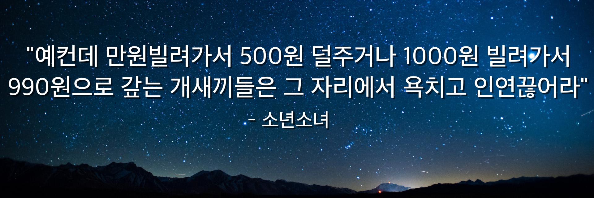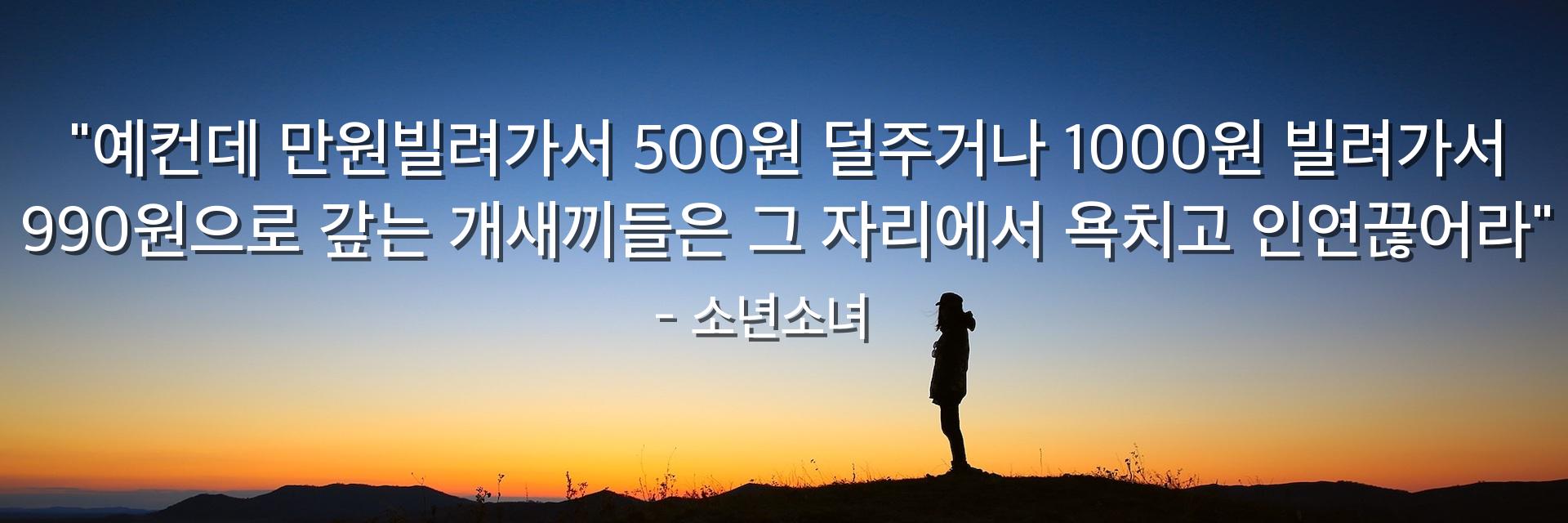 "예컨데 만원빌려가서 500원 덜주거나 1000원 빌려가서 990원으로 갚는 개새끼들은 그 자리에서 욕치고 인연끊어라"