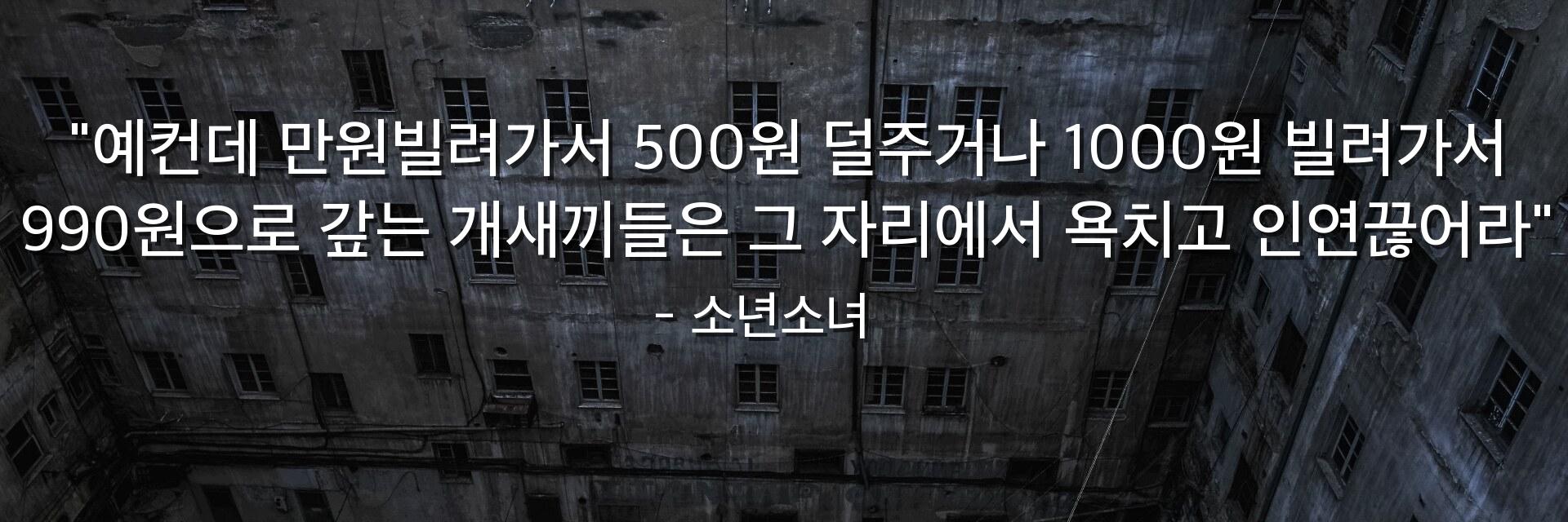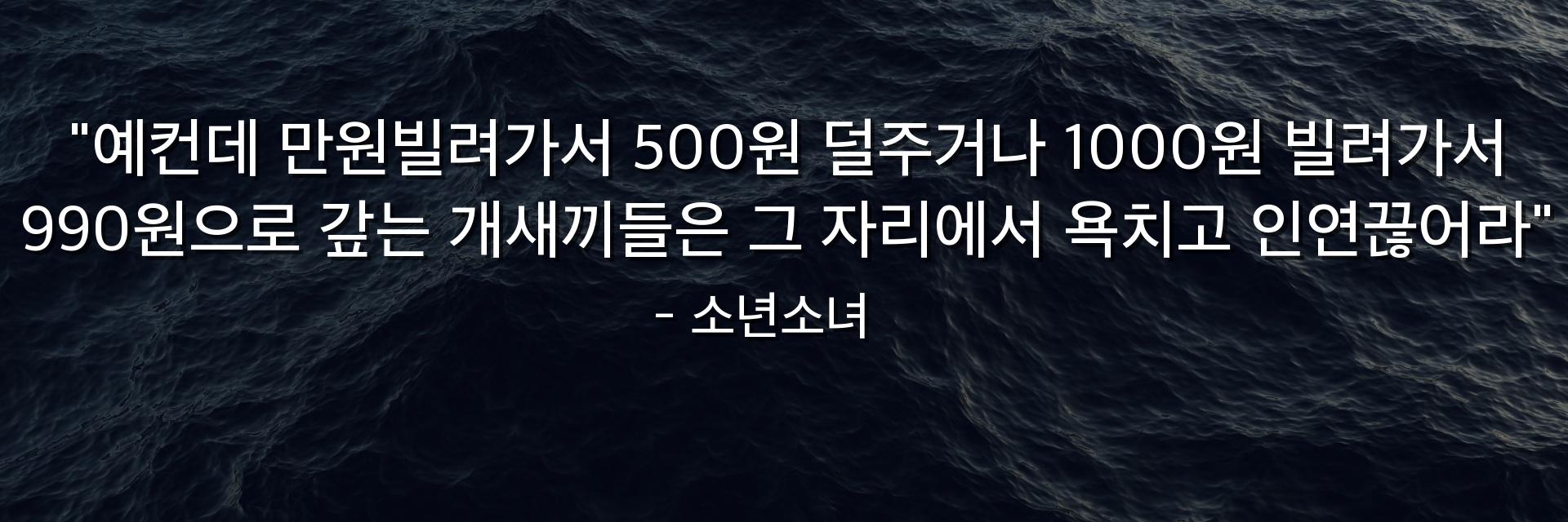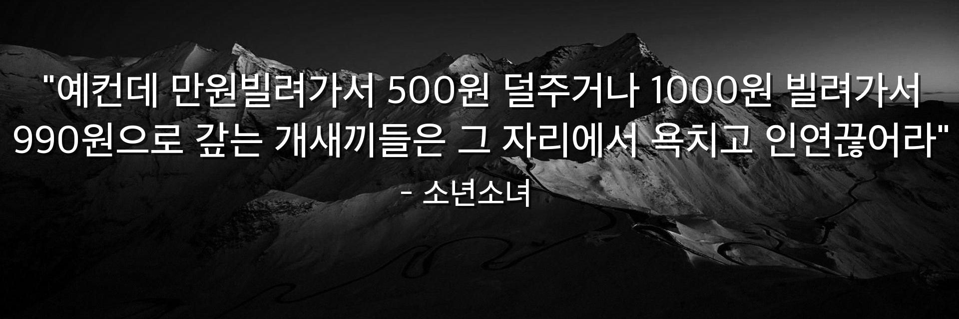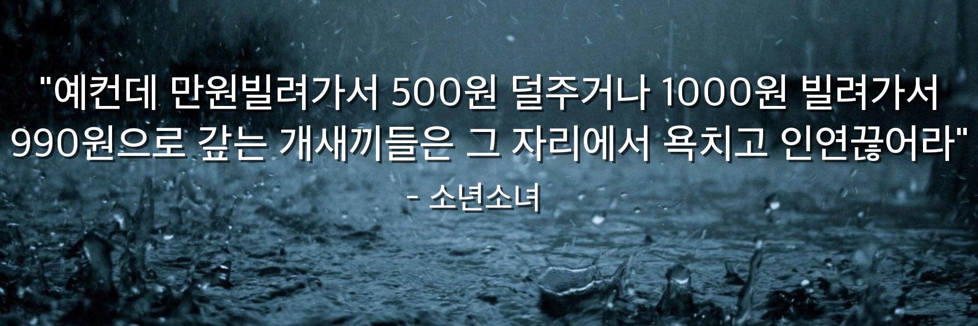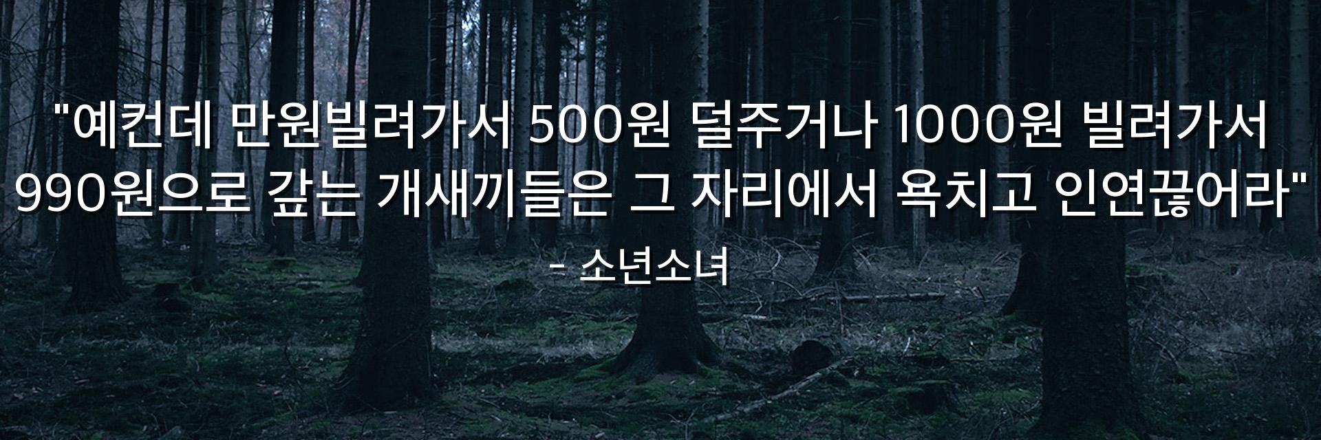 "예컨데 만원빌려가서 500원 덜주거나 1000원 빌려가서 990원으로 갚는 개새끼들은 그 자리에서 욕치고 인연끊어라"