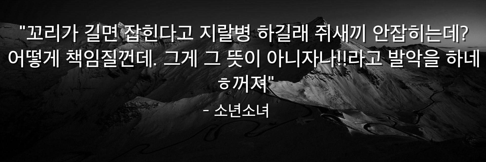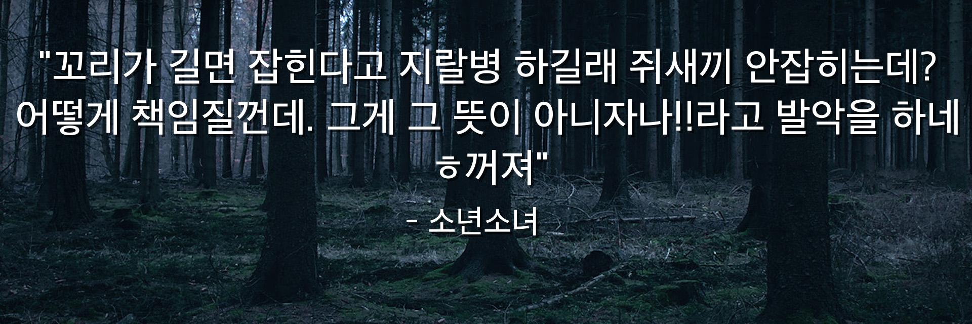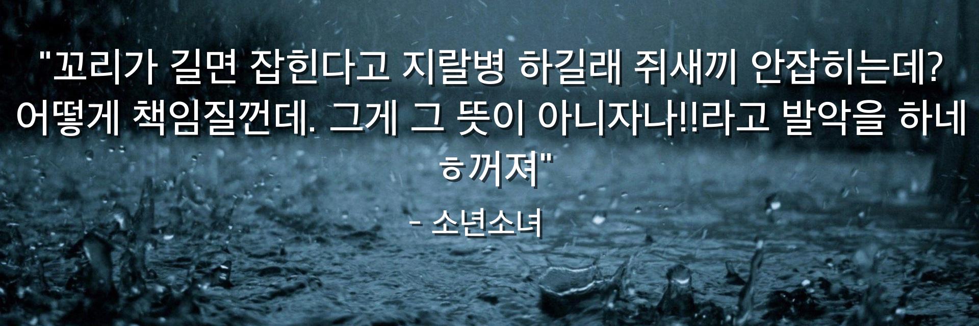 "꼬리가 길면 잡힌다고 지랄병 하길래 쥐새끼 안잡히는데? 어떻게 책임질껀데. 그게 그 뜻이 아니자나!!라고 발악을 하네 ㅎ꺼져"