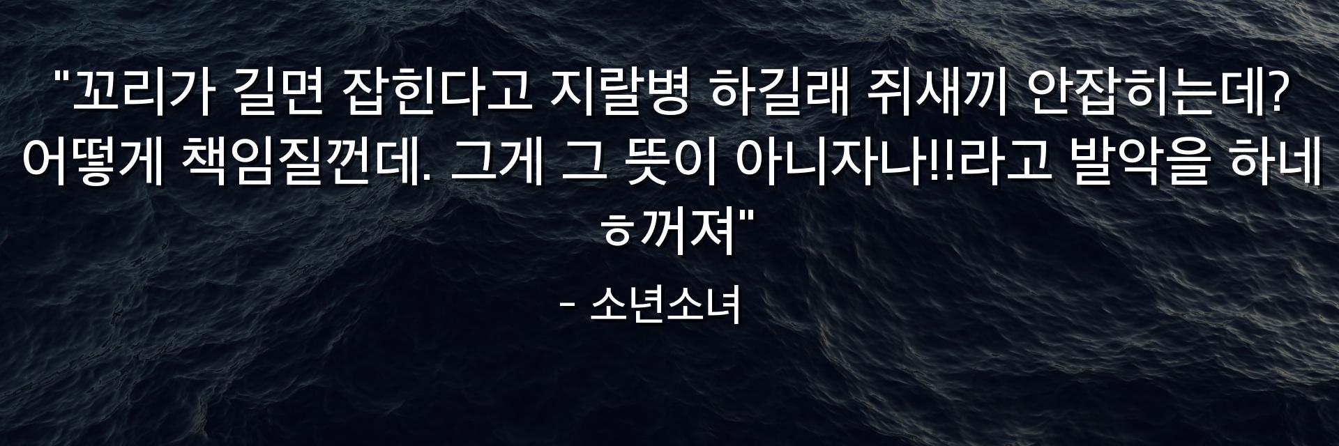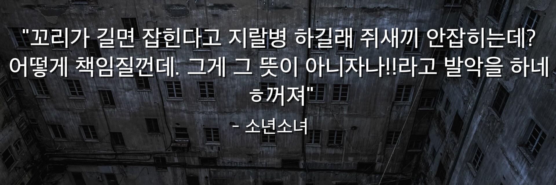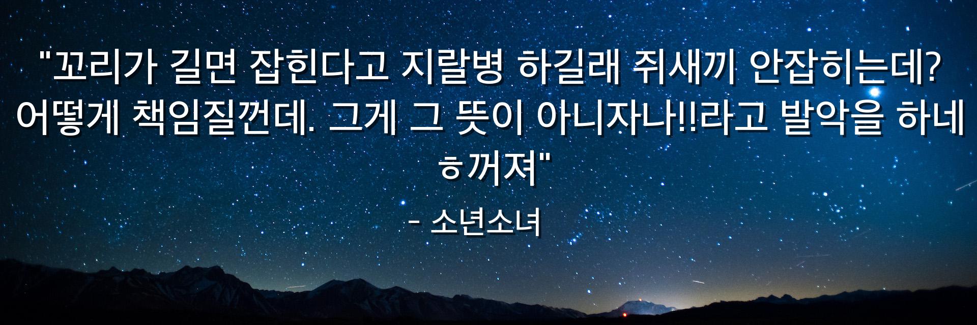 "꼬리가 길면 잡힌다고 지랄병 하길래 쥐새끼 안잡히는데? 어떻게 책임질껀데. 그게 그 뜻이 아니자나!!라고 발악을 하네 ㅎ꺼져"