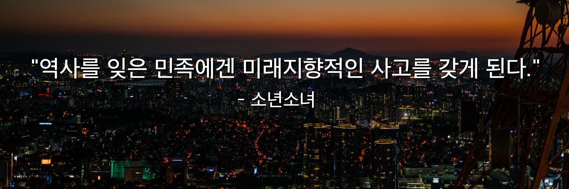 "역사를 잊은 민족에겐 미래지향적인 사고를 갖게 된다."