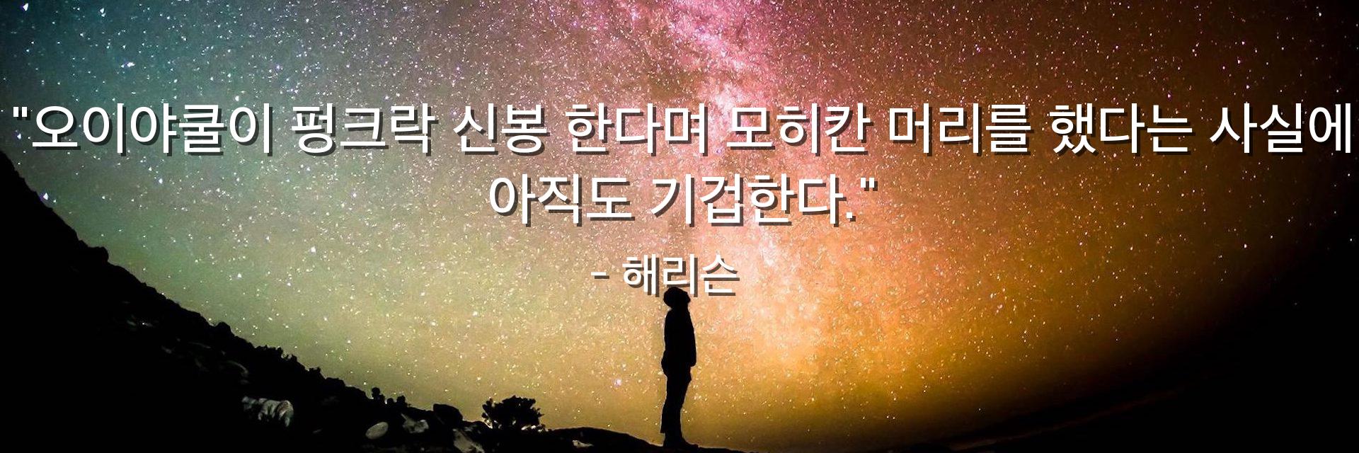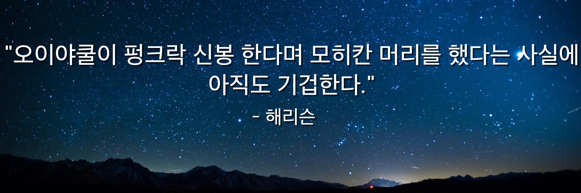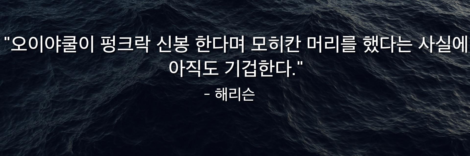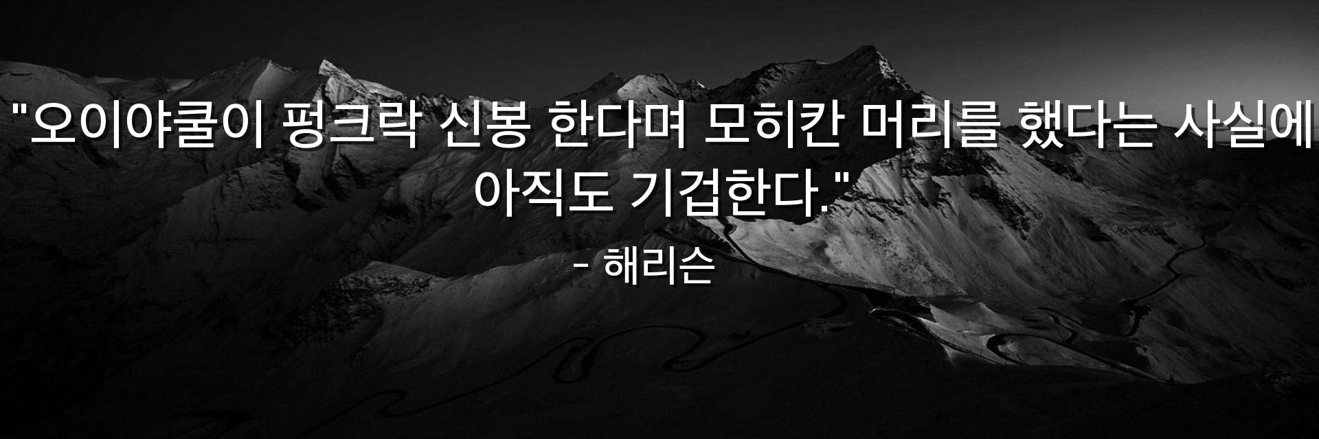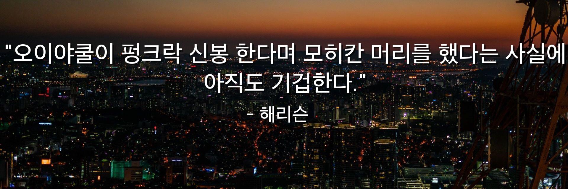 "오이야쿨이 펑크락 신봉 한다며 모히칸 머리를 했다는 사실에 아직도 기겁한다."
