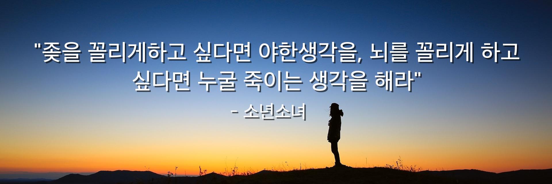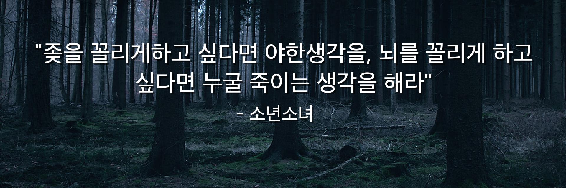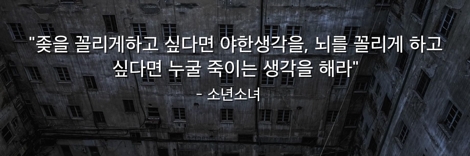 "좆을 꼴리게하고 싶다면 야한생각을, 뇌를 꼴리게 하고 싶다면 누굴 죽이는 생각을 해라"
