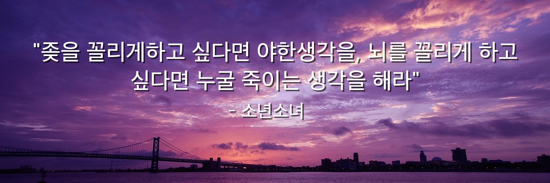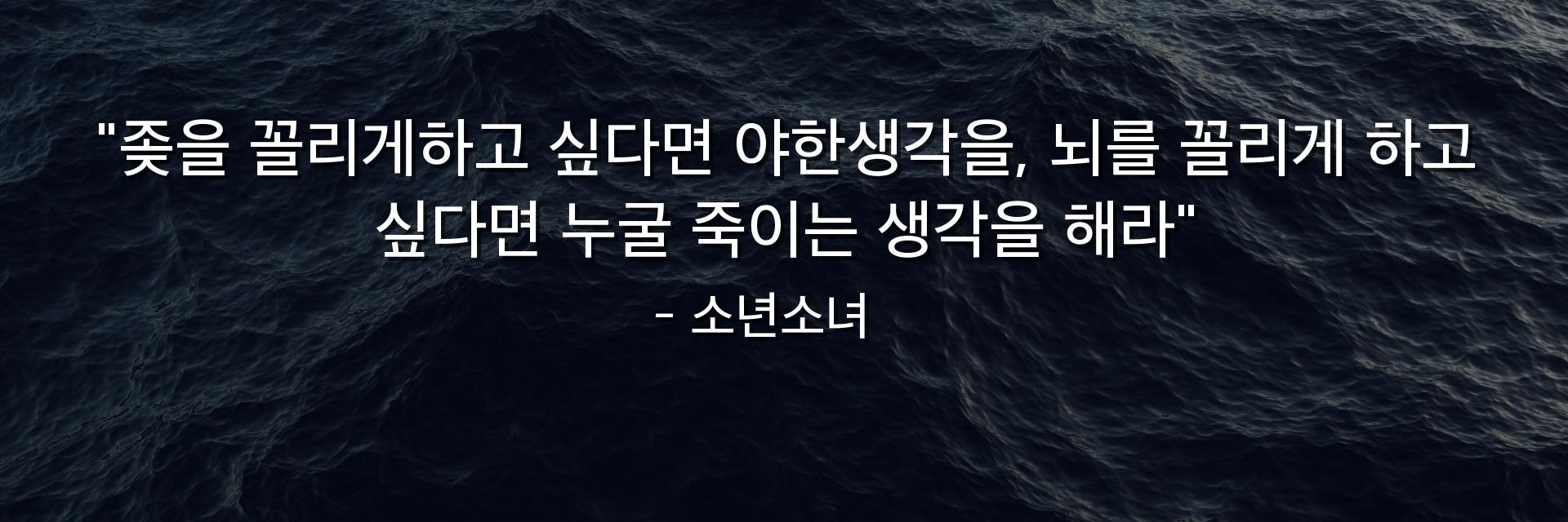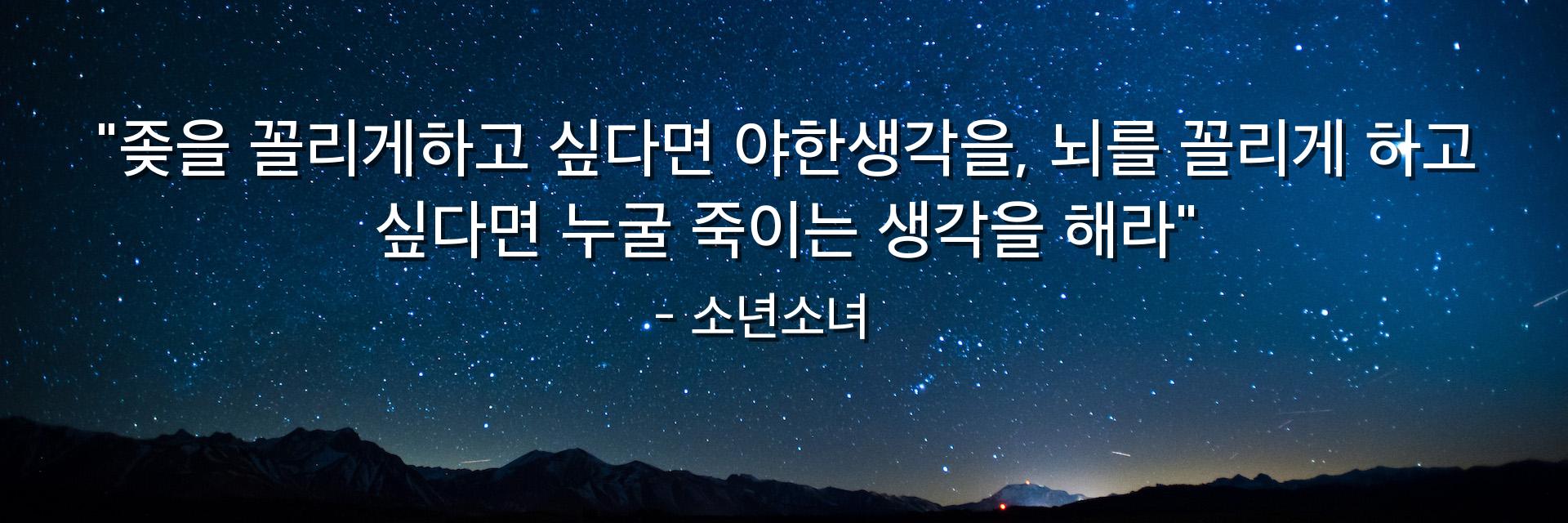 "좆을 꼴리게하고 싶다면 야한생각을, 뇌를 꼴리게 하고 싶다면 누굴 죽이는 생각을 해라"