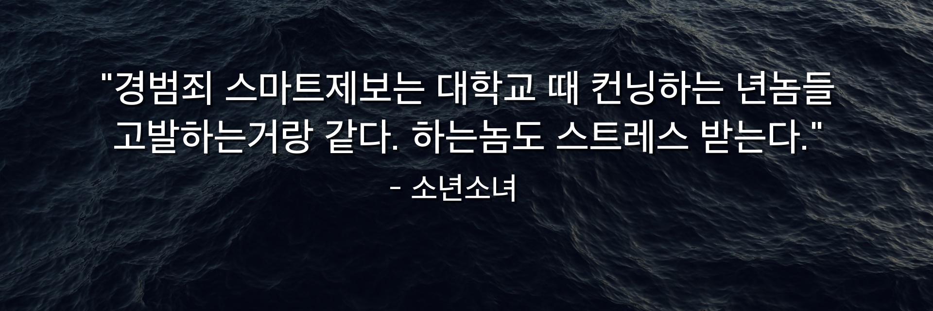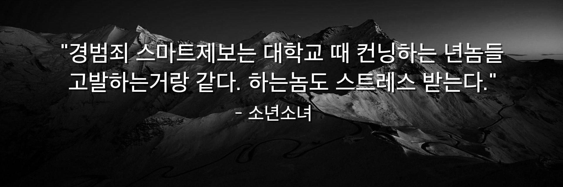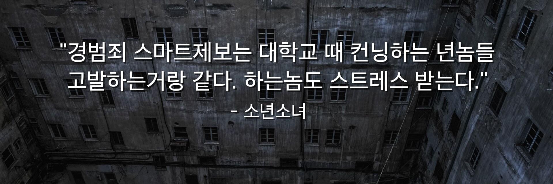 "경범죄 스마트제보는 대학교 때 컨닝하는 년놈들 고발하는거랑 같다. 하는놈도 스트레스 받는다."