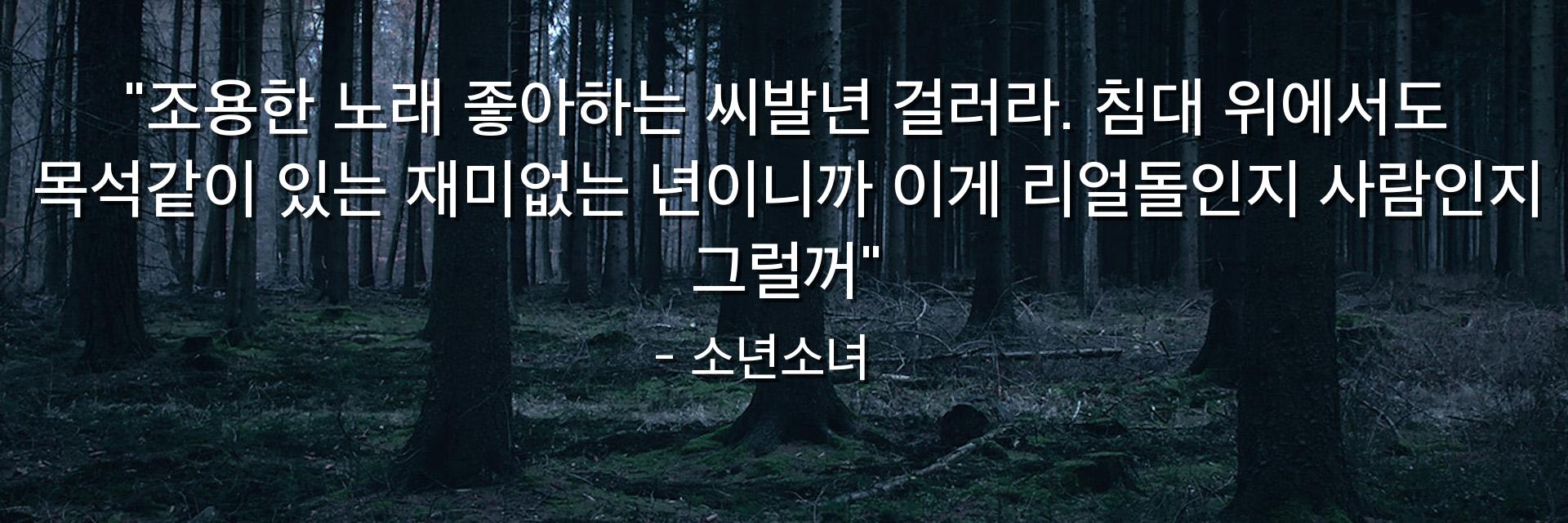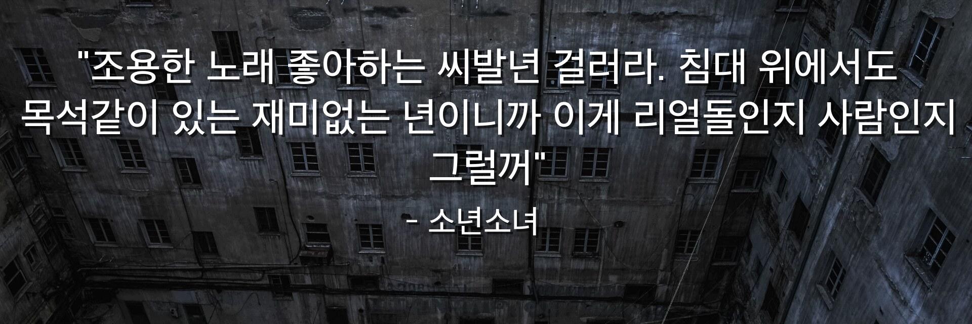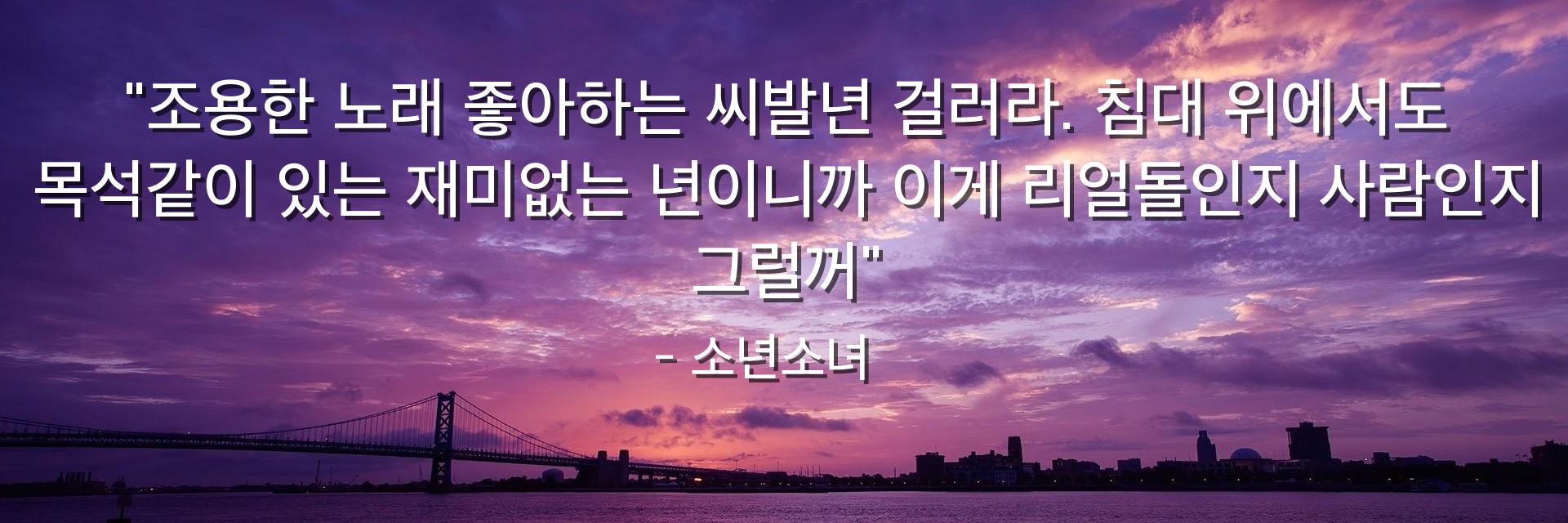"조용한 노래 좋아하는 씨발년 걸러라. 침대 위에서도 목석같이 있는 재미없는 년이니까 이게 리얼돌인지 사람인지 그럴꺼"