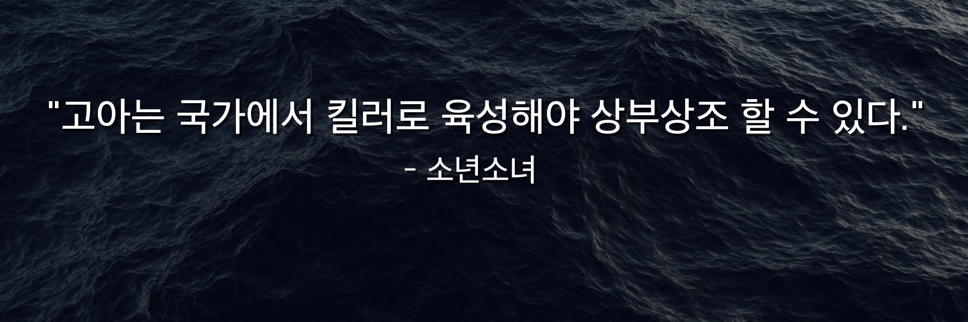"고아는 국가에서 킬러로 육성해야 상부상조 할 수 있다."