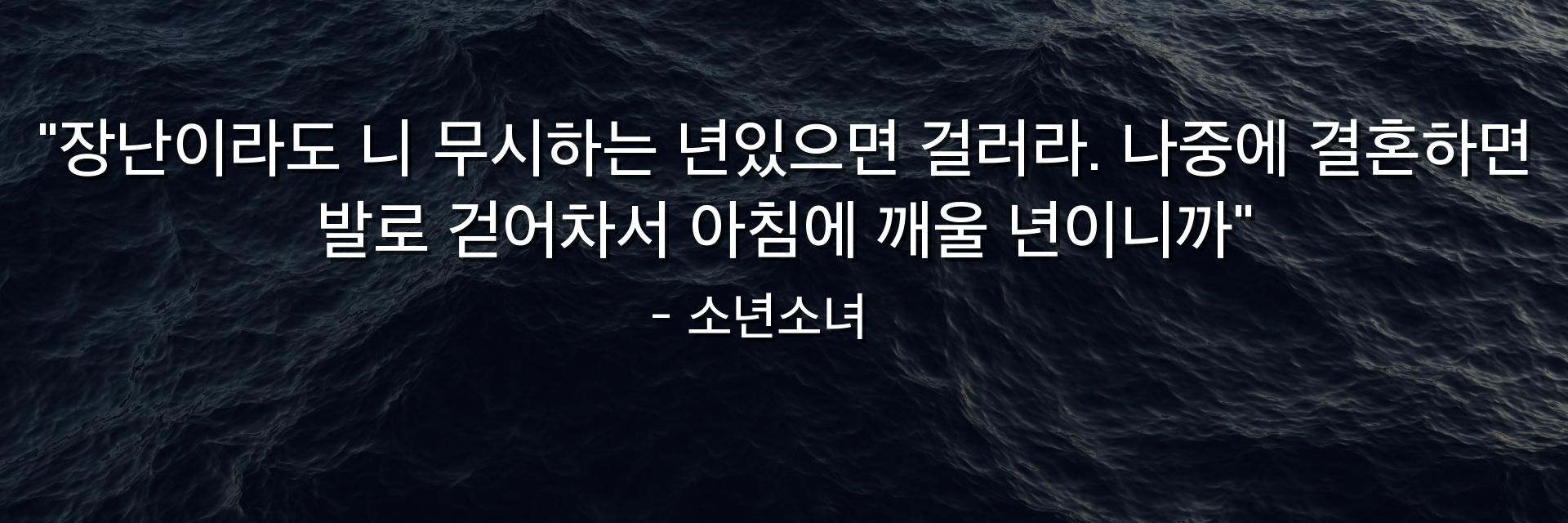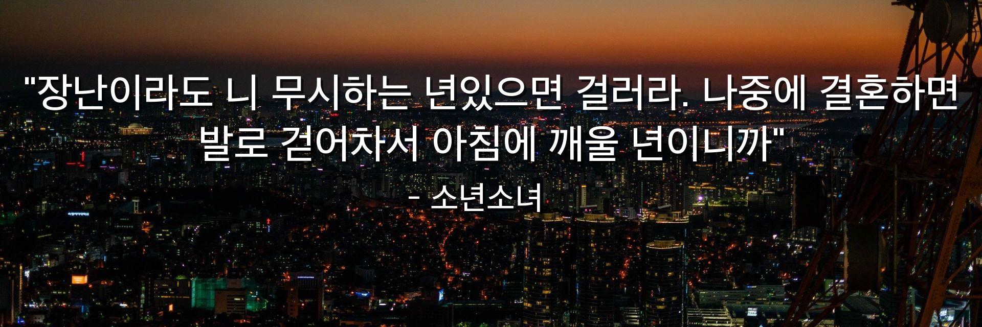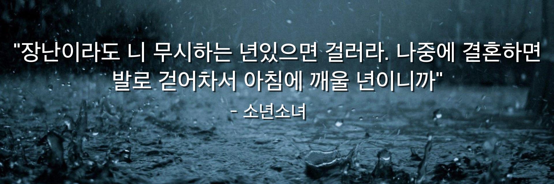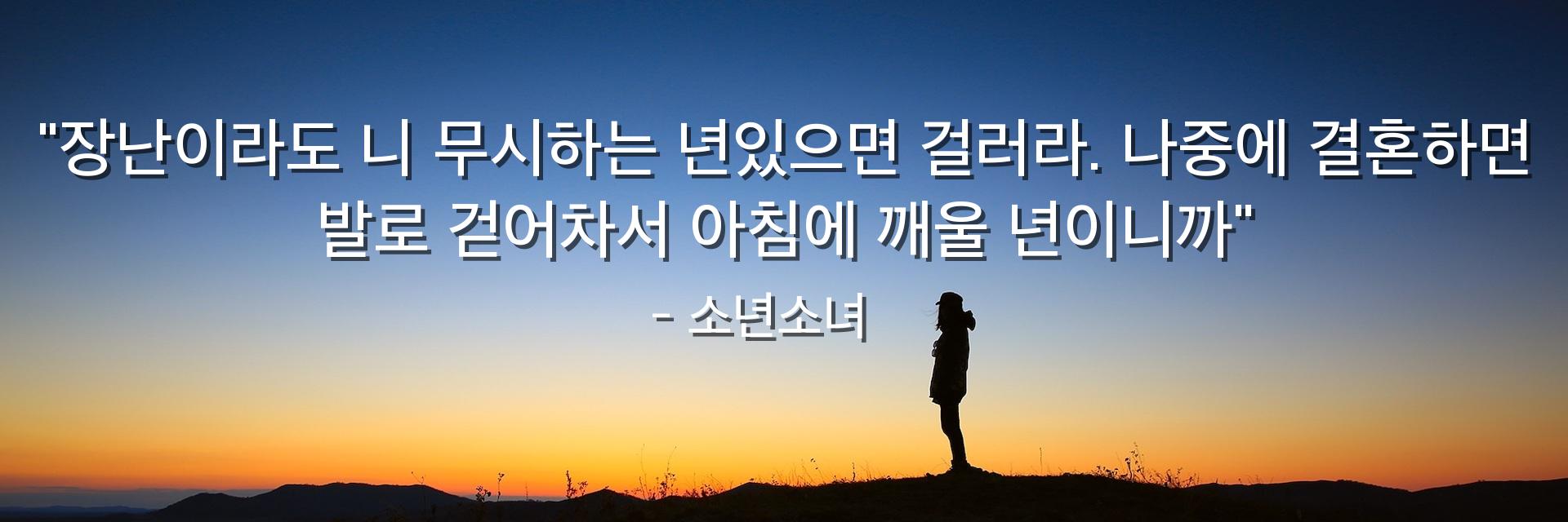"장난이라도 니 무시하는 년있으면 걸러라. 나중에 결혼하면 발로 걷어차서 아침에 깨울 년이니까"