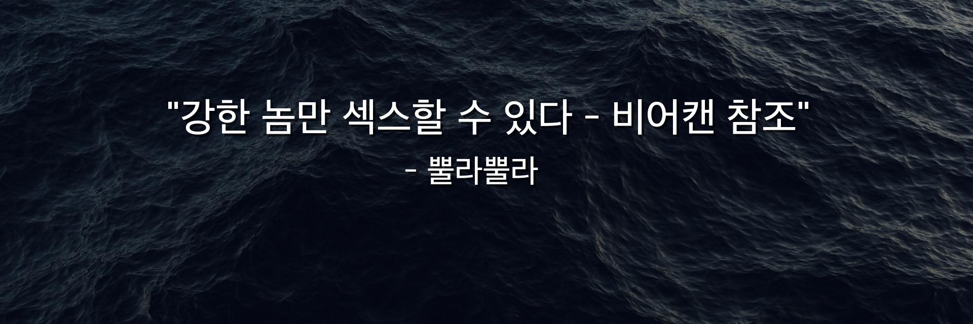 "강한 놈만 섹스할 수 있다 - 비어캔 참조"